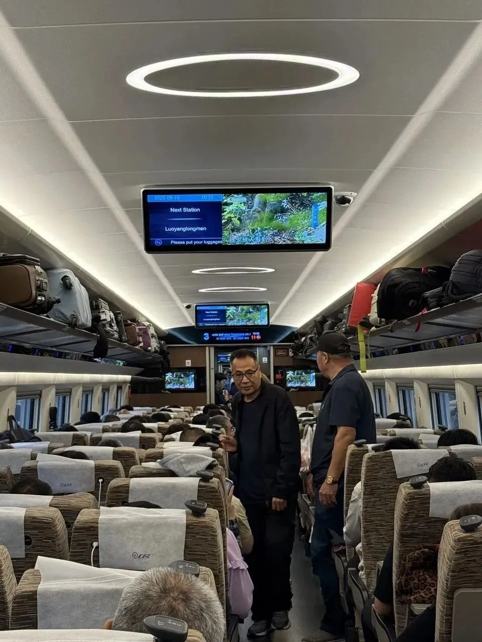 结果,做了无数的攻略,还不如到现场运气好更重要!我们那节车厢离便捷换乘楼梯没几步路,上楼刷身份证过闸口,游刃有余找到32B,前后共花了不到10分钟时间。我寻思着时间又富裕了,老办法改签。两次改签,提前到洛阳,不错不错。