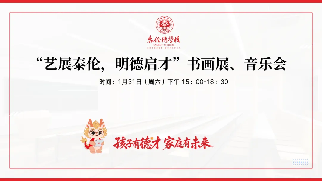 诚邀您和孩子于1月31日(周六)下午,参加我校“艺展泰伦,明德启才”书画展与音乐会活动。