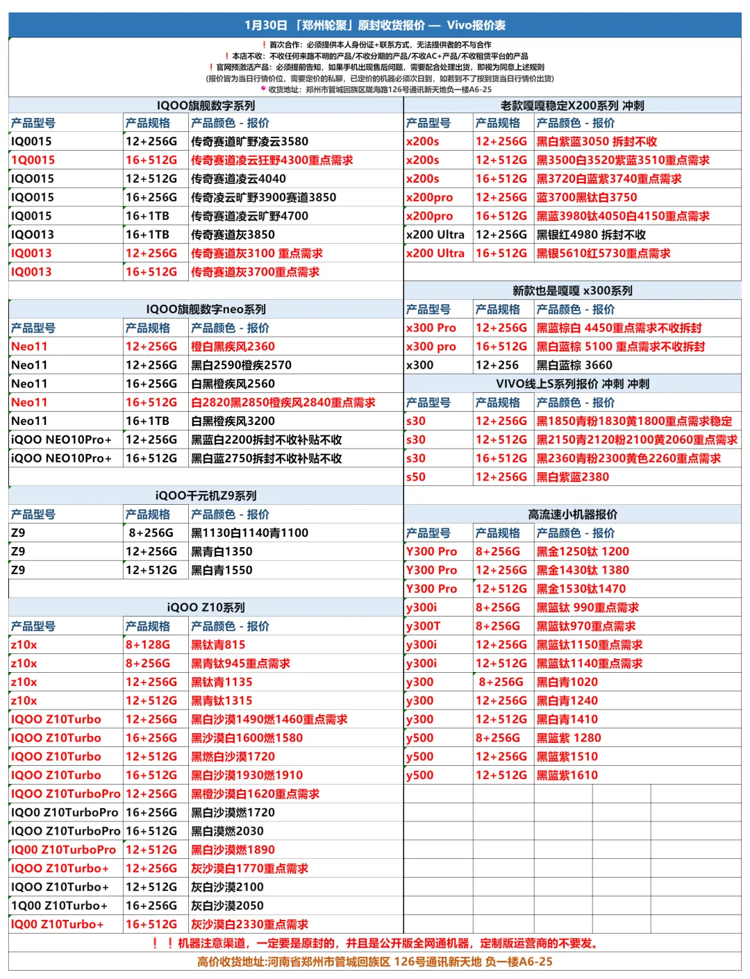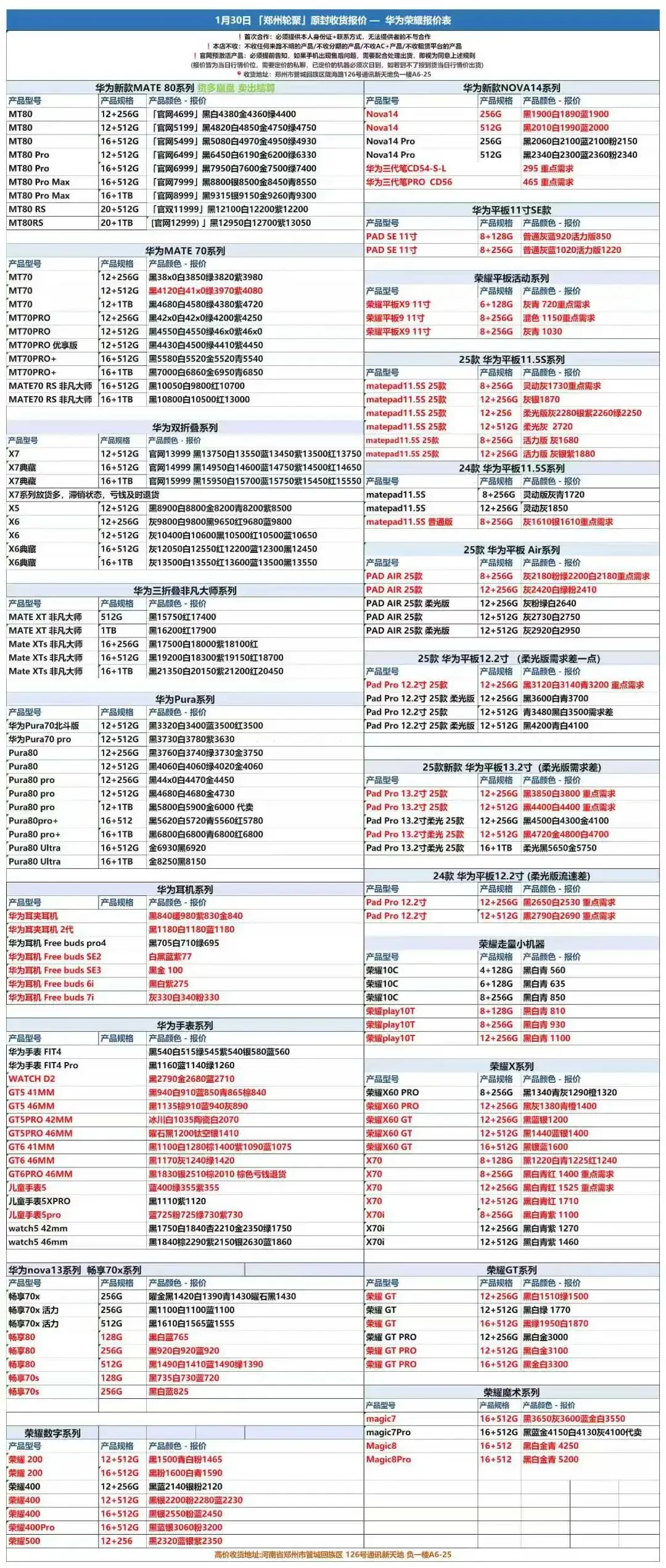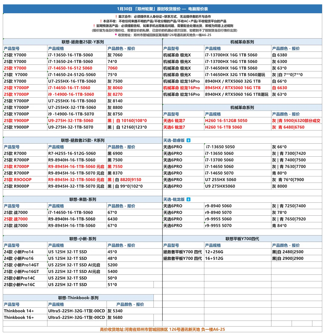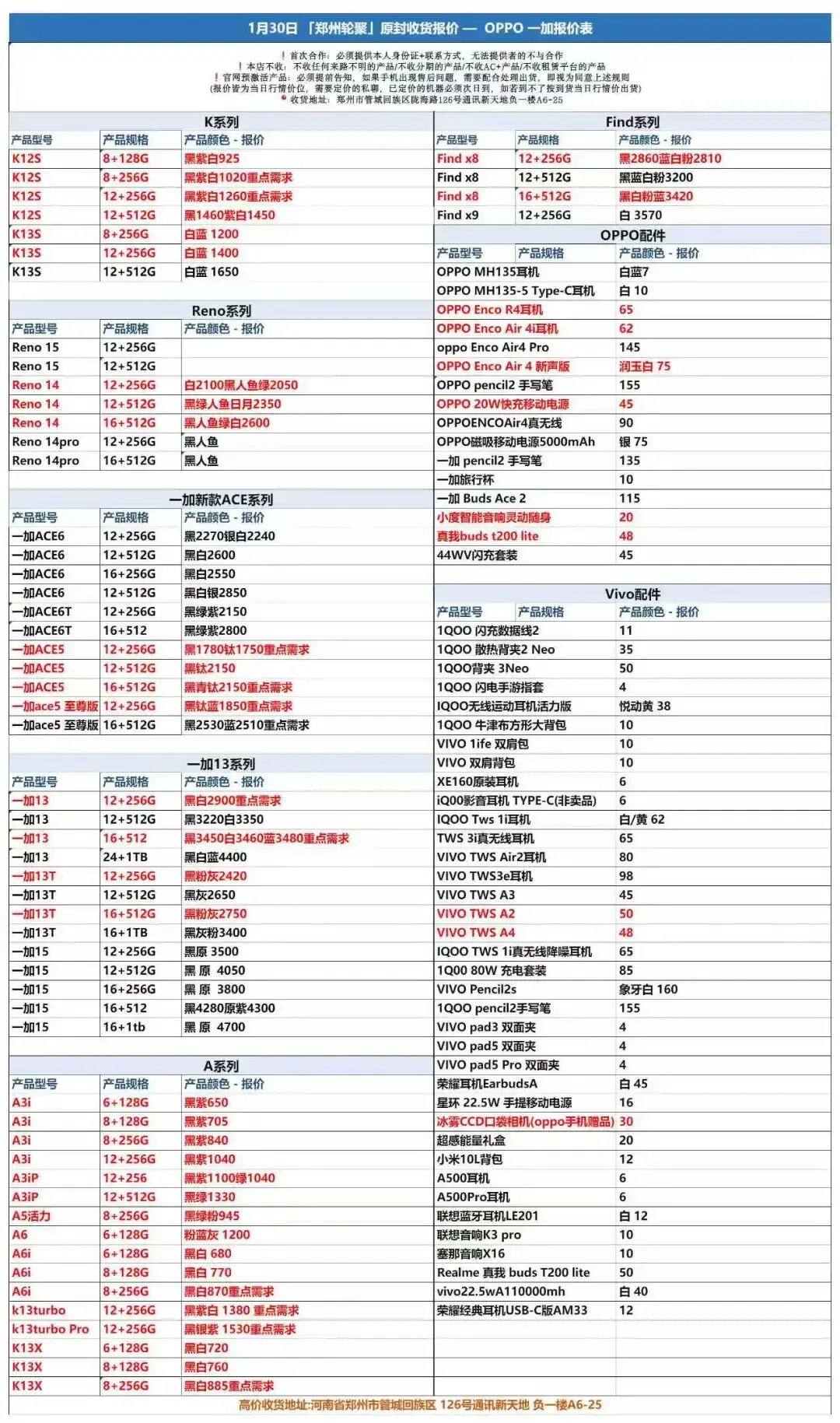郑州轮聚通讯 2026年1.30日数码报价更新