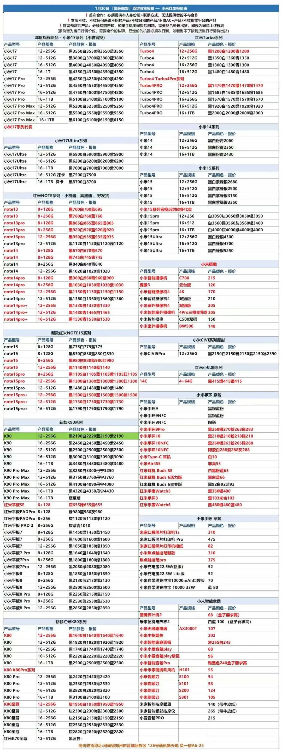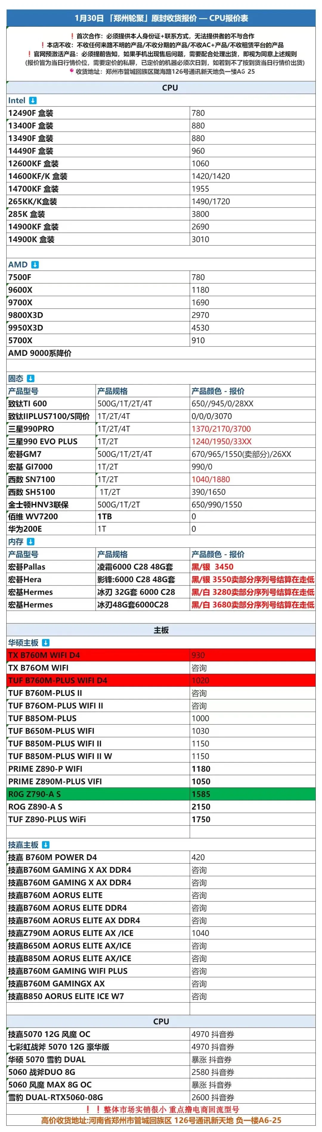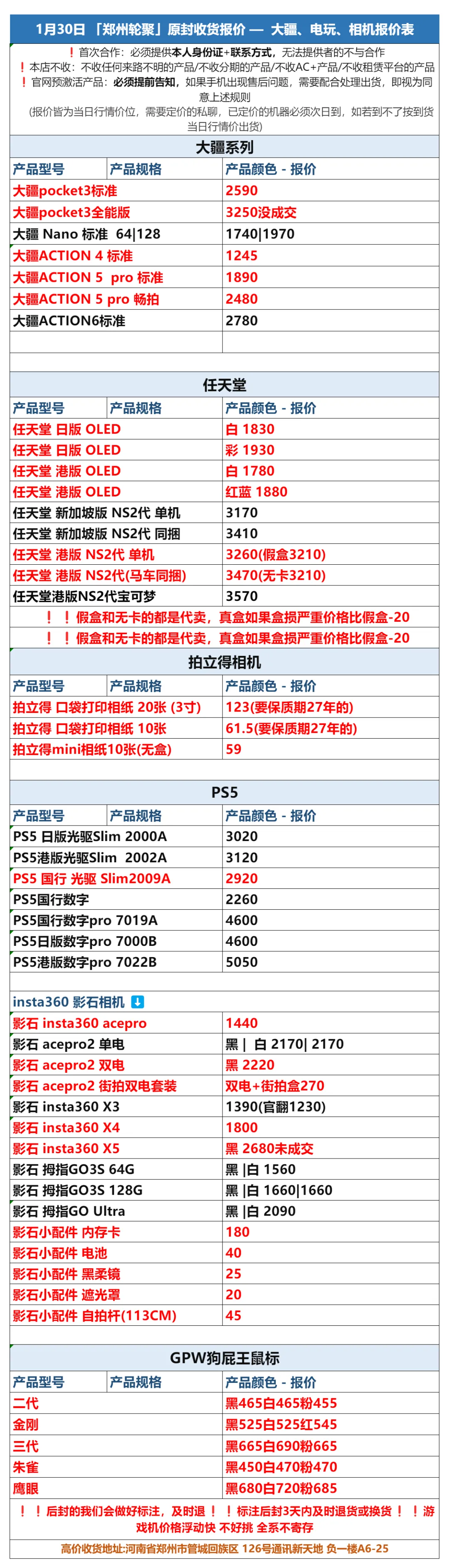 郑州轮聚通讯 2026年1.30日数码报价更新