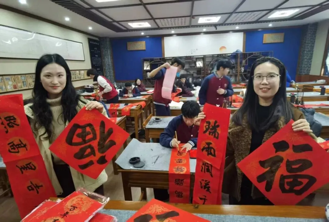 一幅幅散发着清新墨香的春联和福字寄托了师生们辞旧迎新、接祥纳福的共同心声,传递出美好的新年祝愿和昂扬向上的精神面貌。