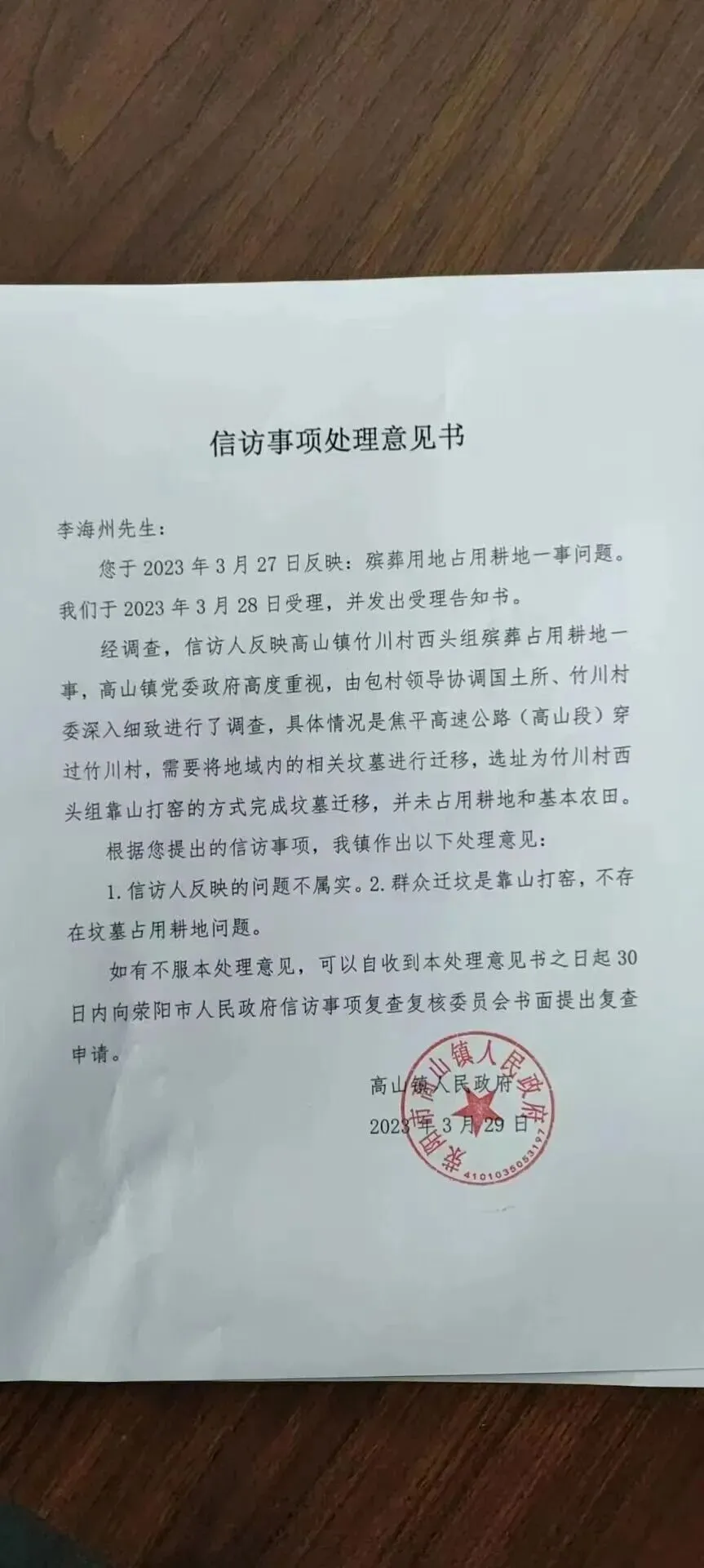 高山镇第一次2023年3月29日失实文件(焦平高速不穿过竹川,在此偷换概念)