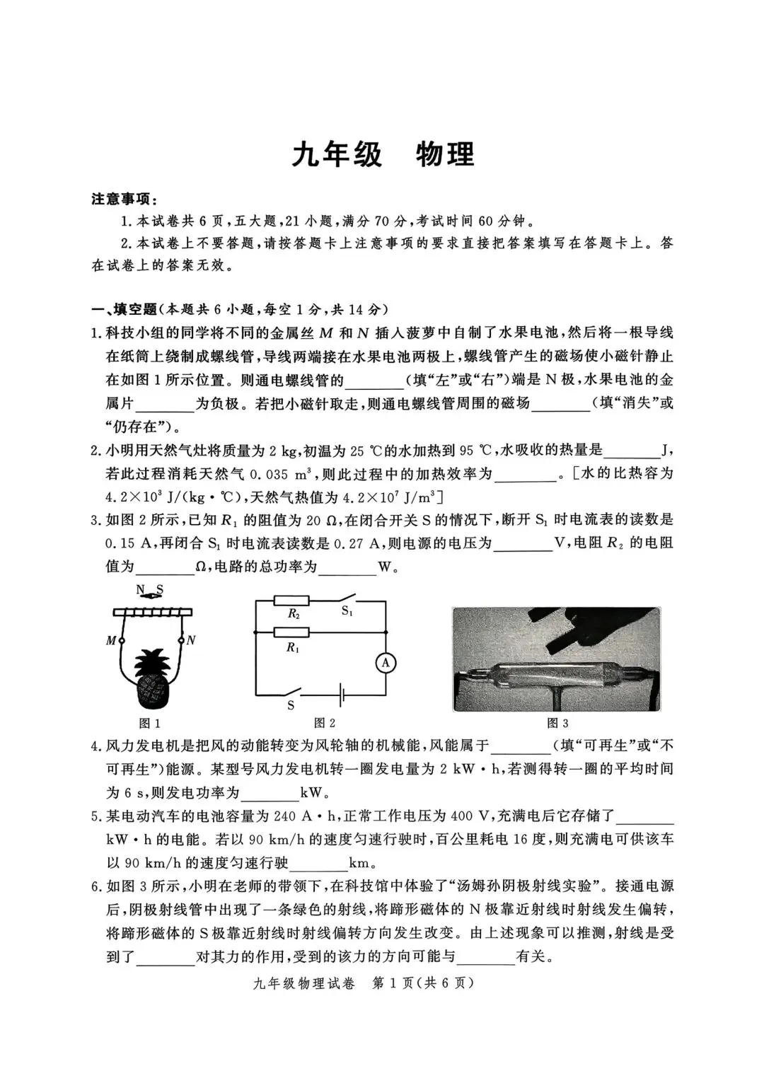 >2025-2026学年河南省郑州市九校联考九上物理期末试卷(含答案)