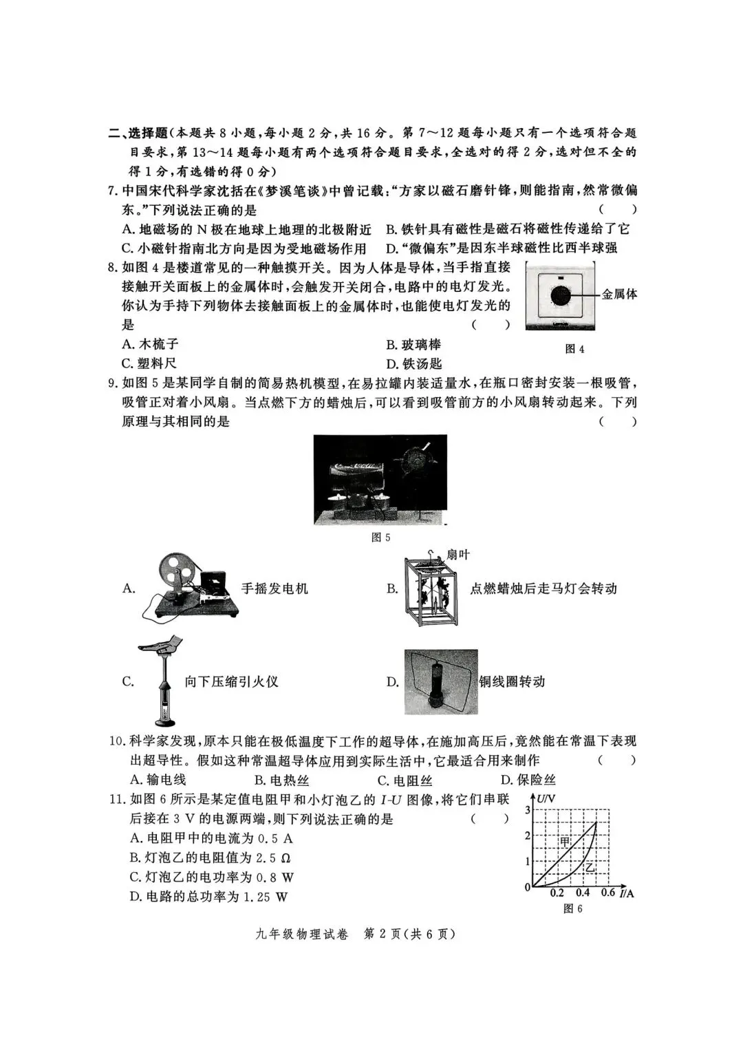 2025-2026学年河南省郑州市九校联考九上物理期末试卷(含答案)
