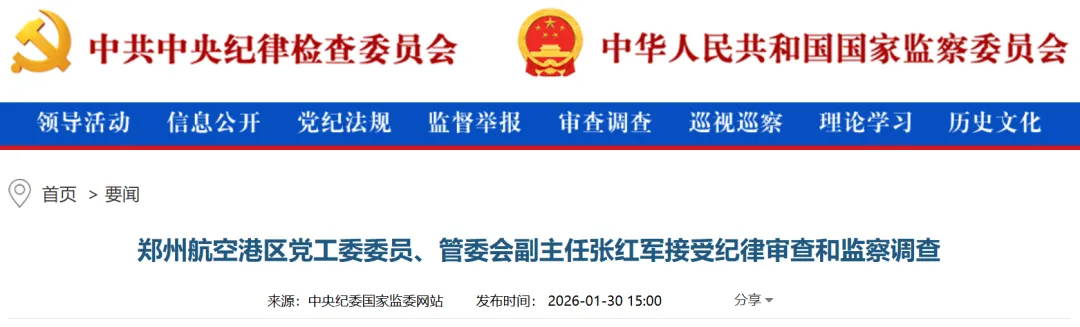 >主动投案,郑州航空港区党工委委员、管委会副主任张红军被查