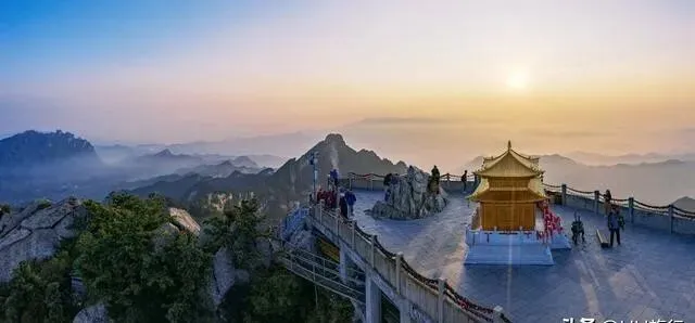 山顶的金殿道观 , 和武当山并称南北二顶 , 道教文化底蕴深厚。 不过老君山爬起来挺累的 , 体力一般的建议坐缆车上去~