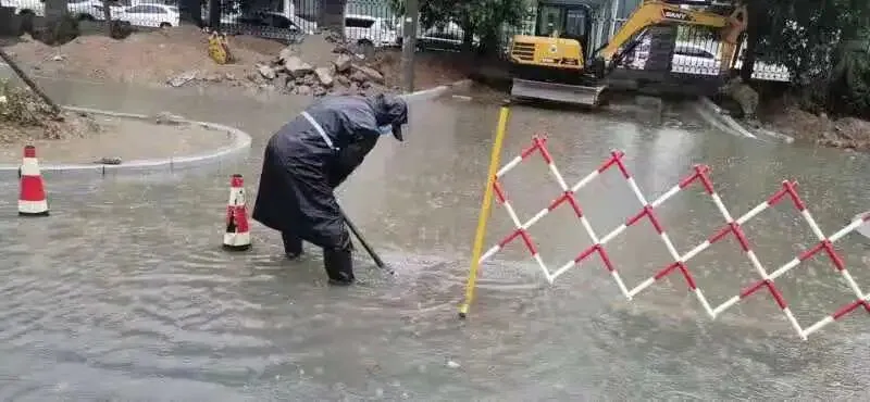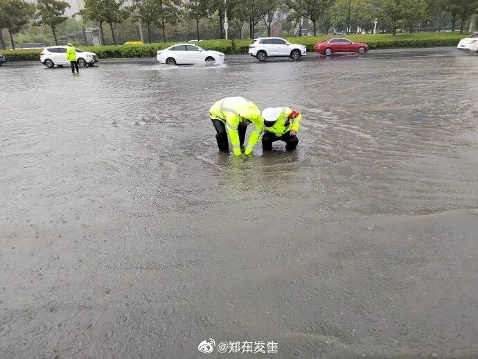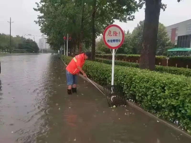 8月28日至8月29日郑州市防汛人员全员在岗,领导分包各区下沉一线督导检查,城区所有河道、桥涵、隧道、道路等重点部位全部采取“四位一体”值守,值守人员不间断巡查积水情况,复位井盖、补装防护框、清理雨水篦子杂物,确保收排水设施正常运转。