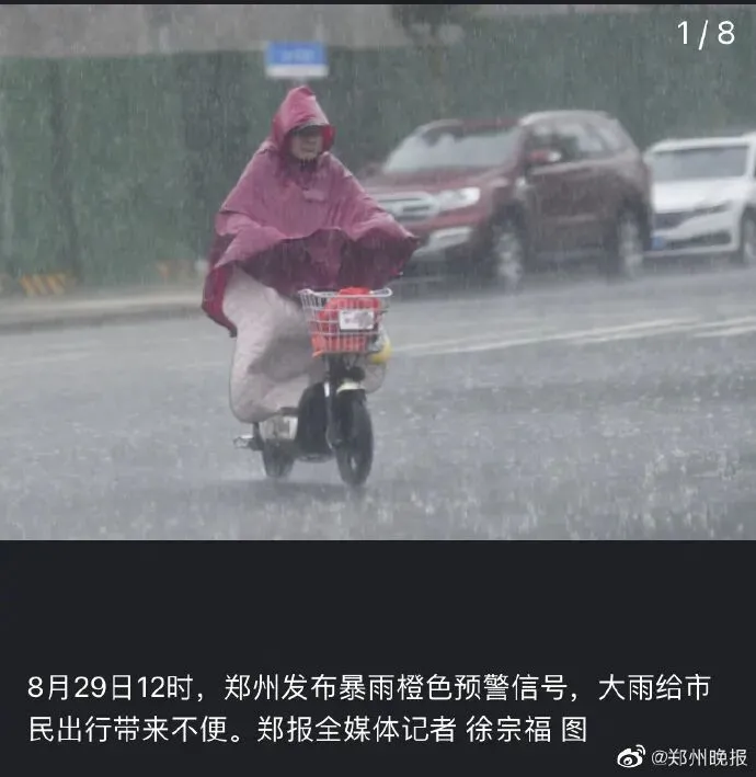 29日中午,郑州再降大到暴雨,局部大暴雨。郑州市气象台连续发布暴雨蓝色、橙色预警信号。下午2时许,记者在航海路淮南街看到路口的积水最深处已没过车轮的二分之一,过往车辆纷纷选择绕行,在长江路兴华街路口的窨井盖不断有雨水涌出,窨井盖上方竖立着市政管理处的“危险”标识牌。本轮降雨过程历时长、范围广,落区与前期洪涝灾害较重地区重叠度较高。河南省防汛抗旱指挥部已于8月29日12时启动防汛Ⅳ级应急响应。