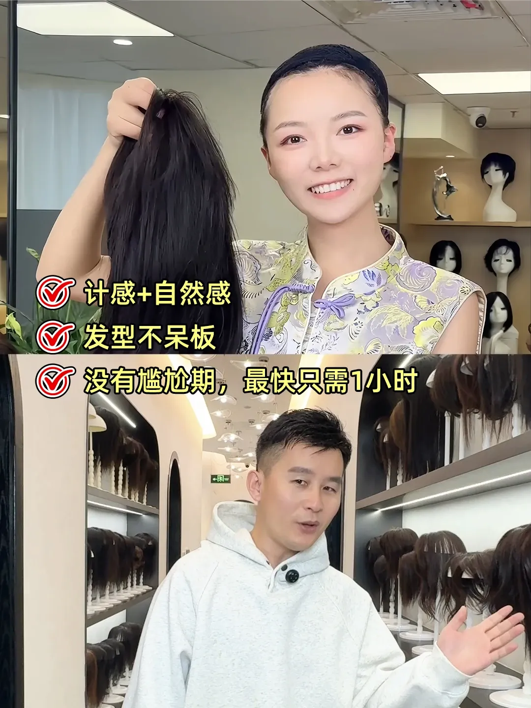 ✅ 私人定制:根据脸型、发质与毛发密度设计,追求自然融合。