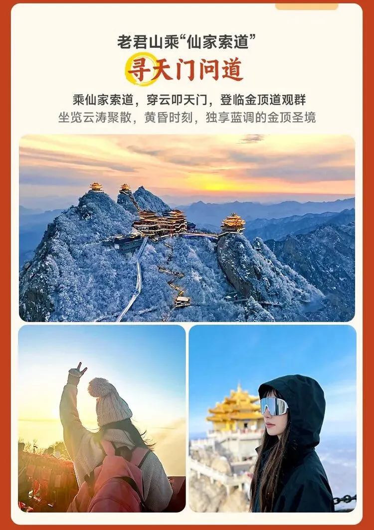 活动提示:老君山海拔高,纯徒步登山难度较大,时间紧张,建议根据个人体能,选择对应的缆车;