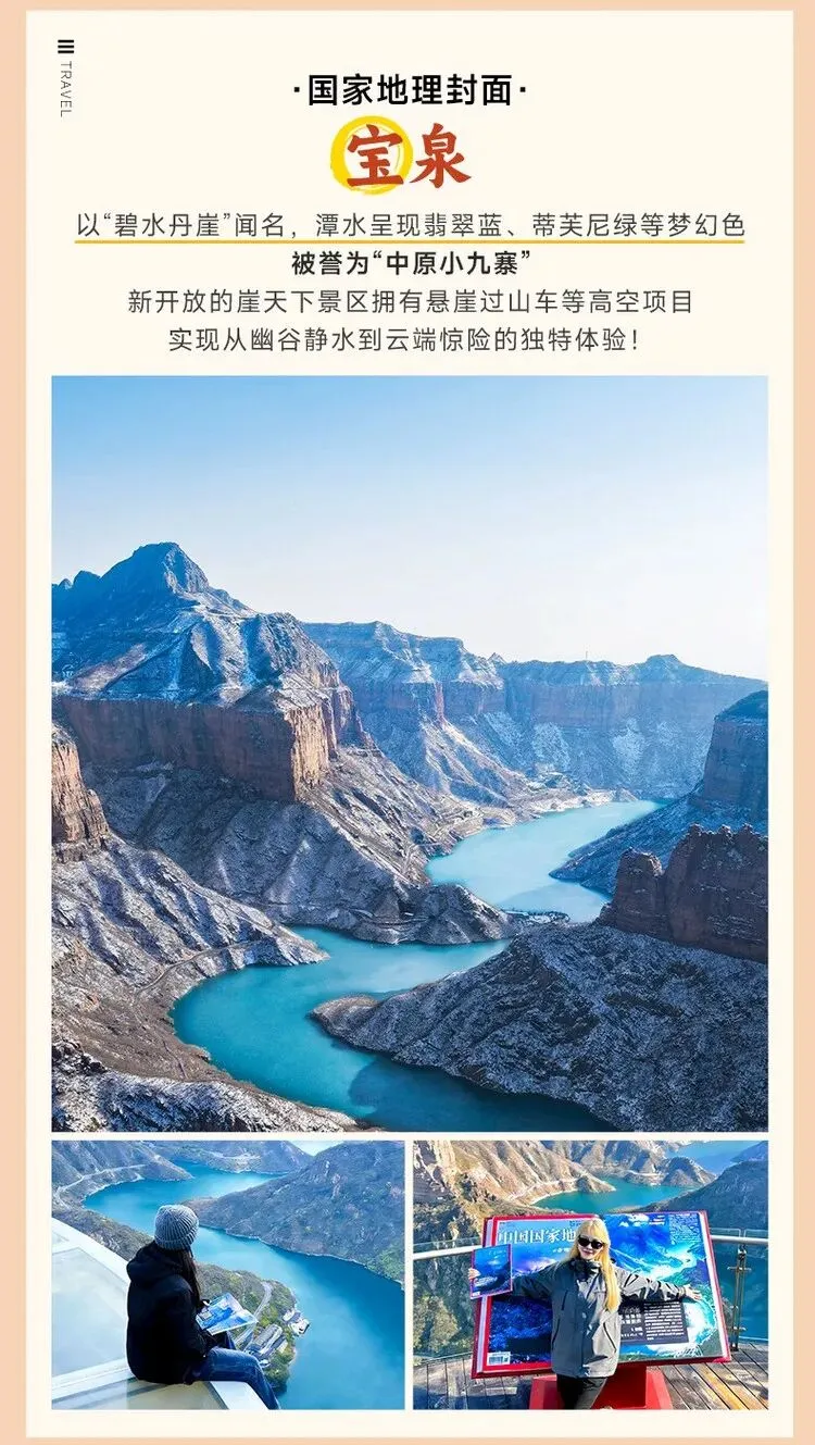 【宝泉大峡谷】(几乎无爬山,全程轻松)以 “水” 为魂,五步一潭、十步一瀑,被誉为 “中原瀑布群;