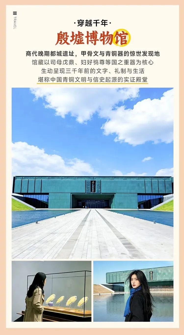 【殷墟博物馆】国家考古遗址公园的核心工程,是一座全面展示商朝文明的国家重点专题博物馆。