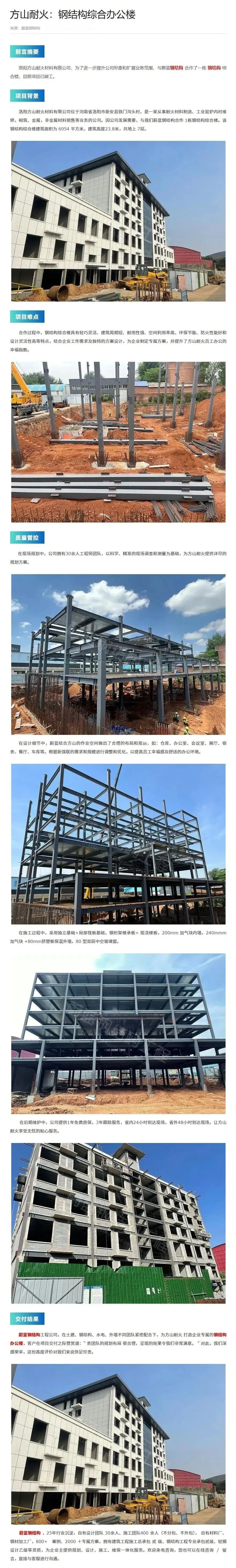 >蔚蓝案例 | 洛阳方山7层钢结构综合办公楼项目