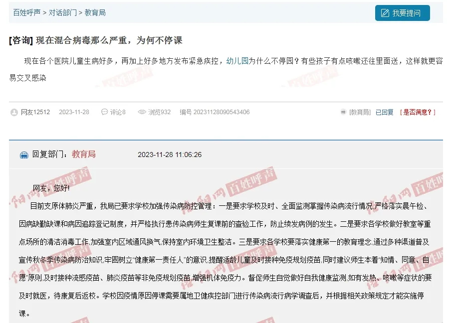 目前支原体肺炎严重,我局已要求学校加强传染病防控管理: