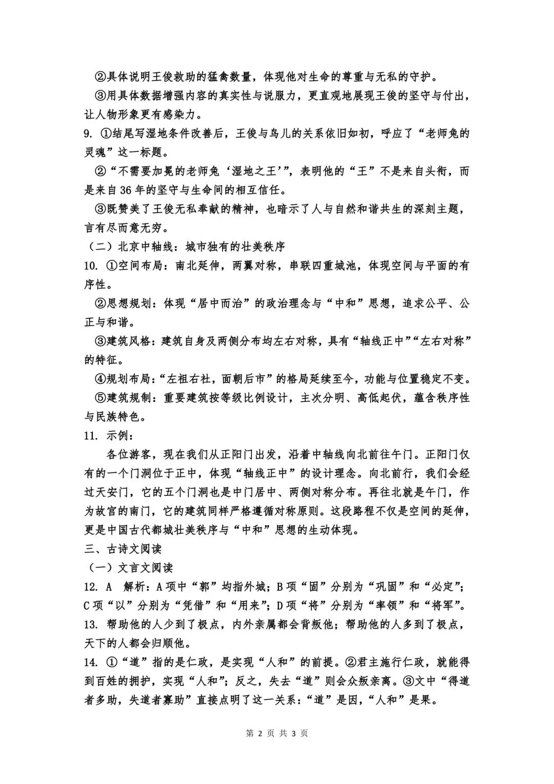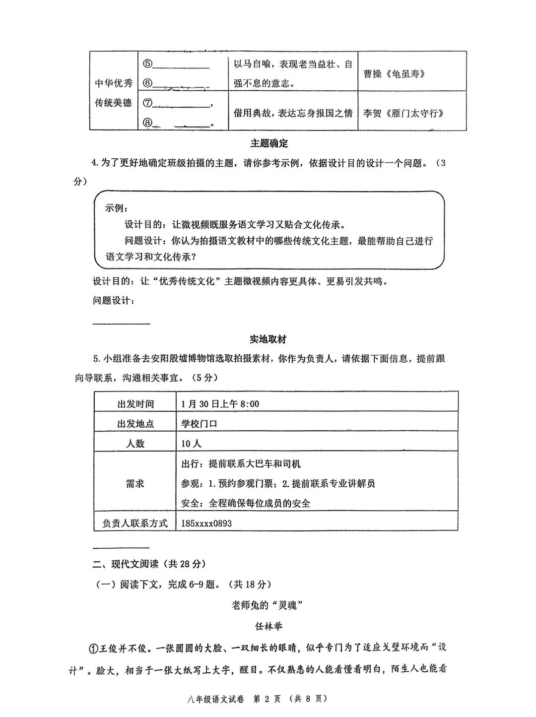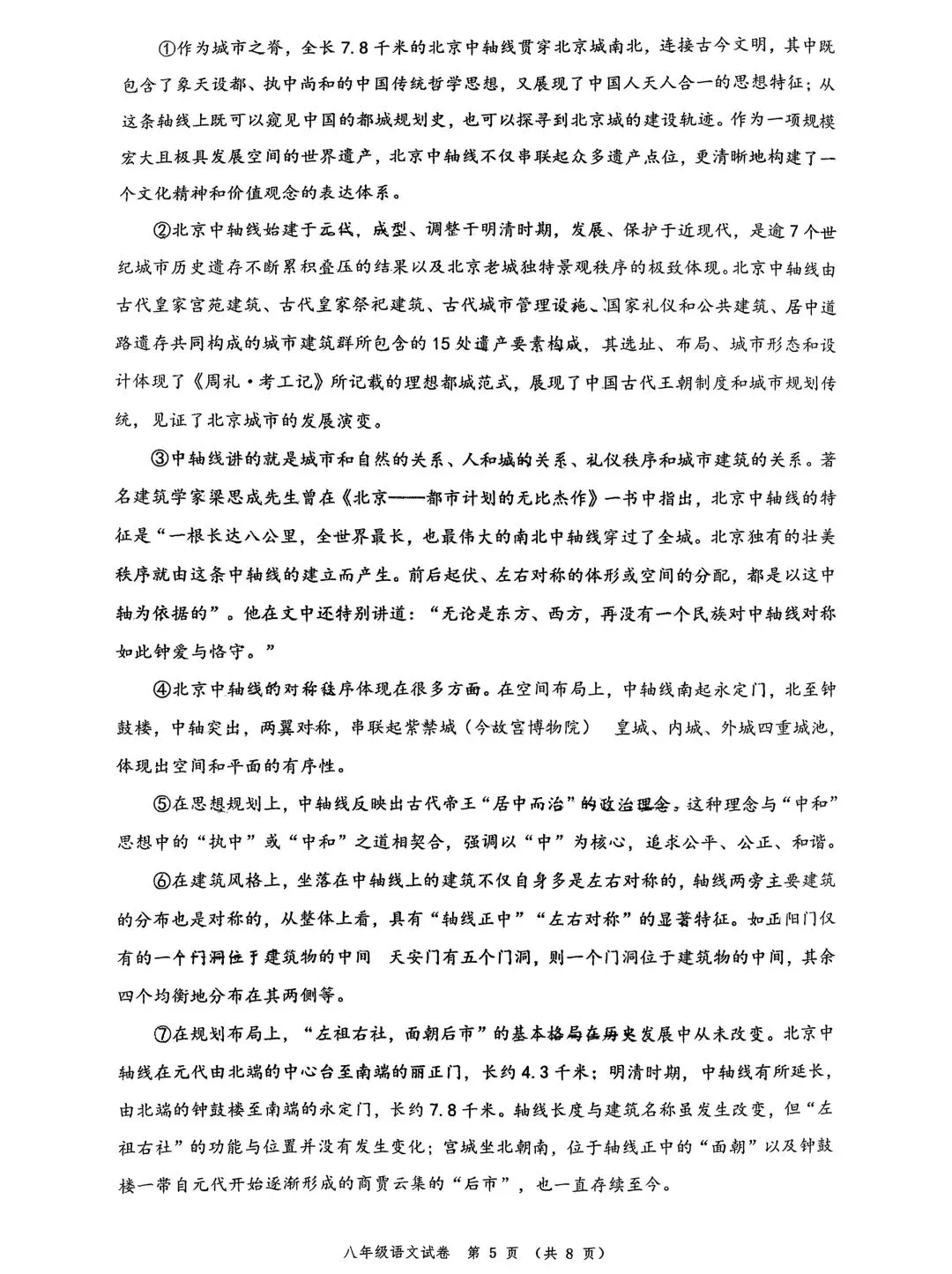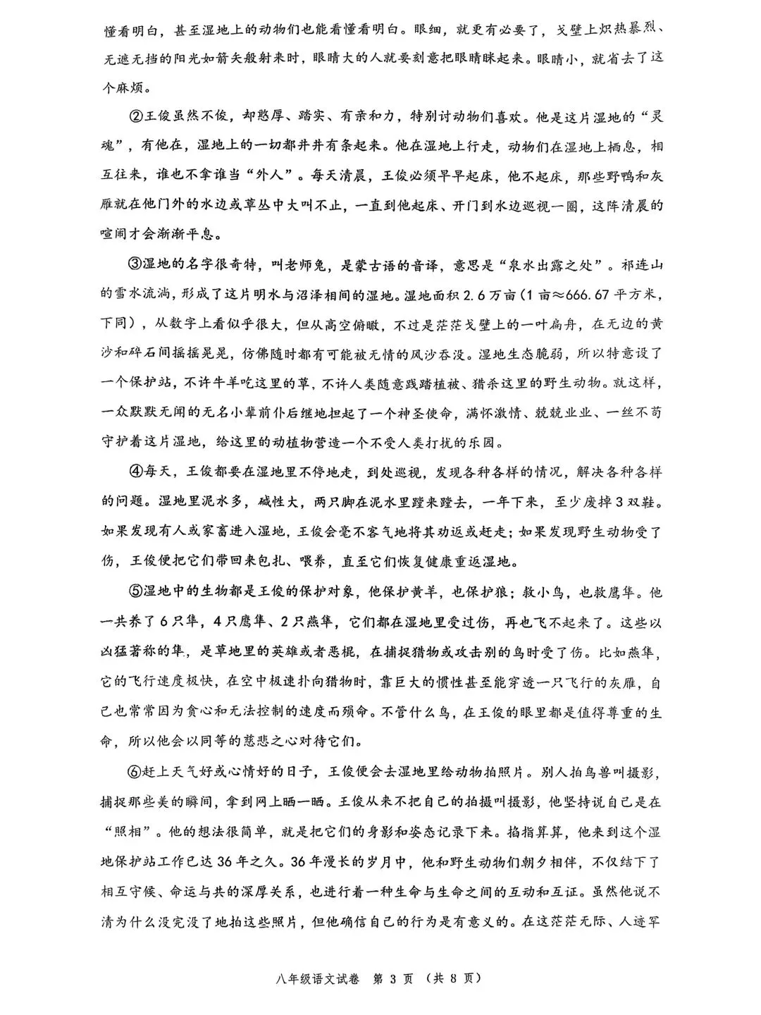 >郑州中学2025-2026学年上学期八年级语文期末试卷及答案