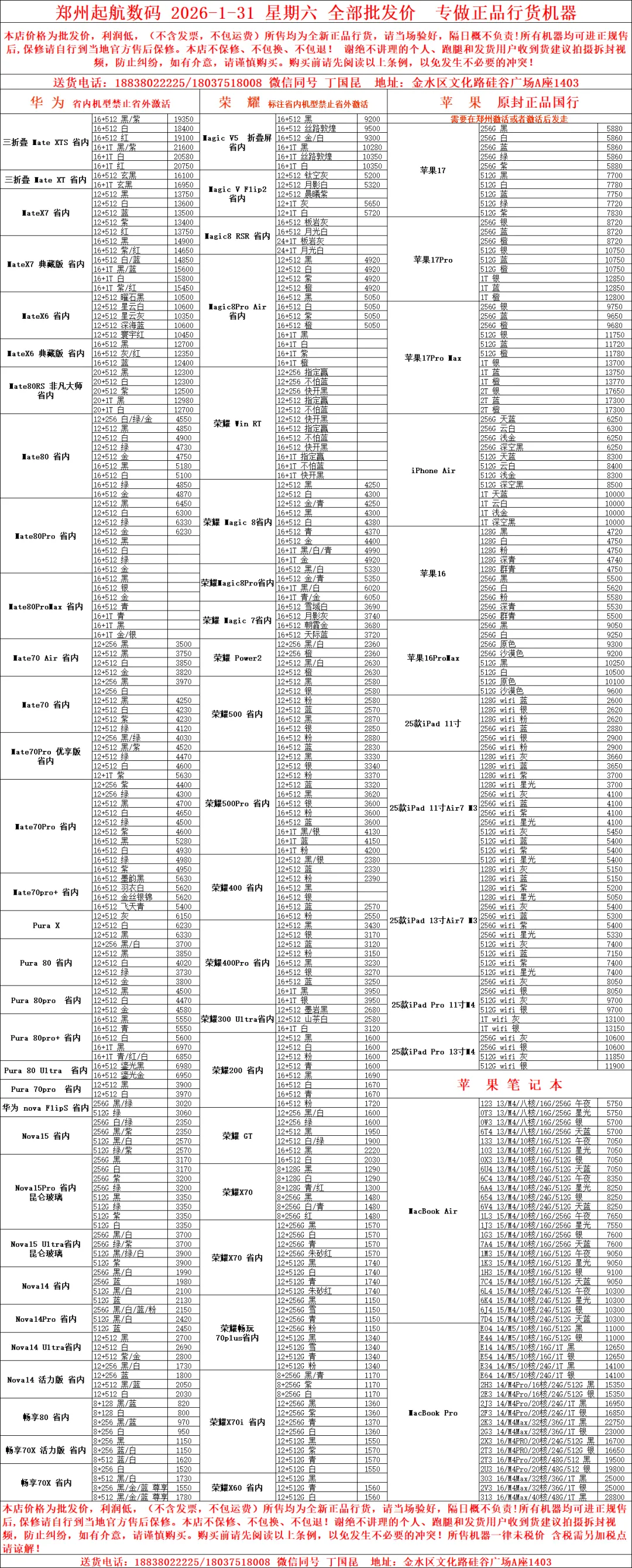 每天手机最新行情 请关注微信每日推送微信公众号:郑州起航数码公司地址:郑州市金水区文化路82号硅谷广场A座1403