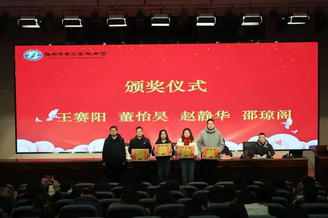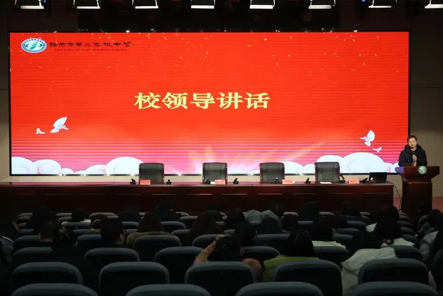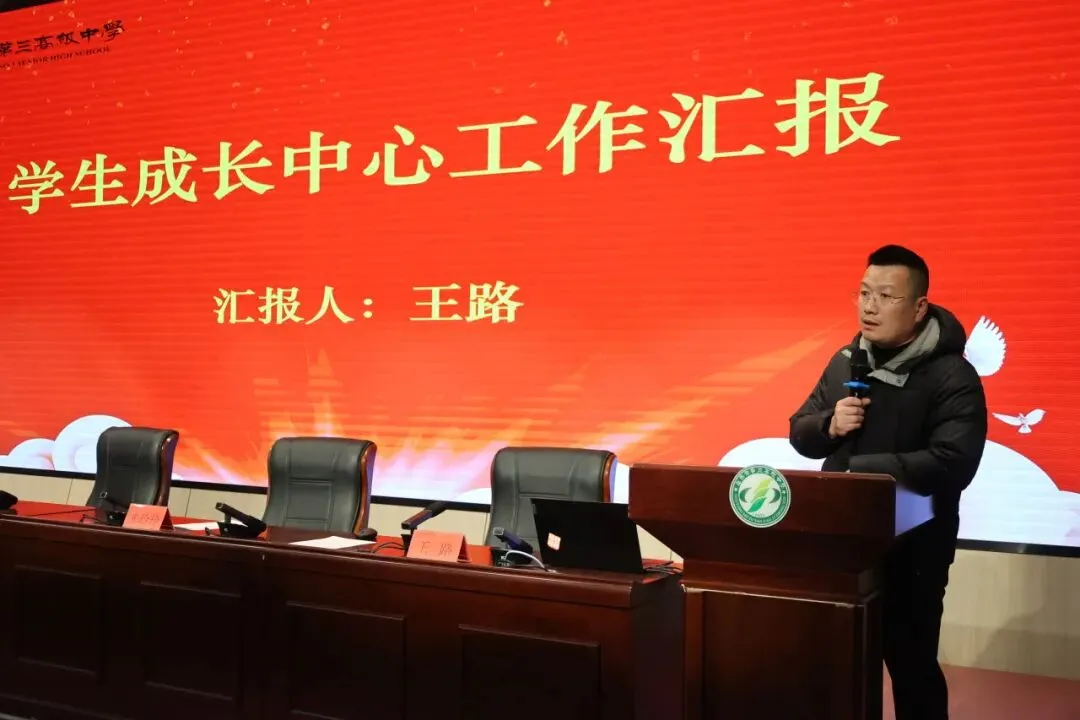 为全面总结学期德育工作,进一步推动班主任队伍专业发展,2026年1月28日上午,洛阳市第三高级中学在报告厅召开“回顾耕耘路 策马育栋梁”全体班主任工作会议。校级领导、全体班主任及学生成长中心全体成员出席了本次会议。会议由学生成长中心主任王路主持。