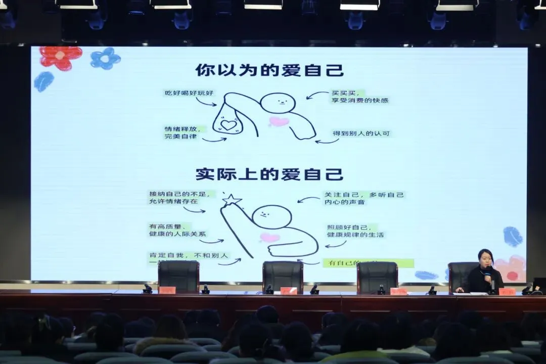 学校心理教师张晓莹围绕学生心理健康教育开展专题授课,培训内容紧密贴合班主任日常工作实际,涵盖学生心理疏导核心方法、常见心理问题干预策略等关键内容。