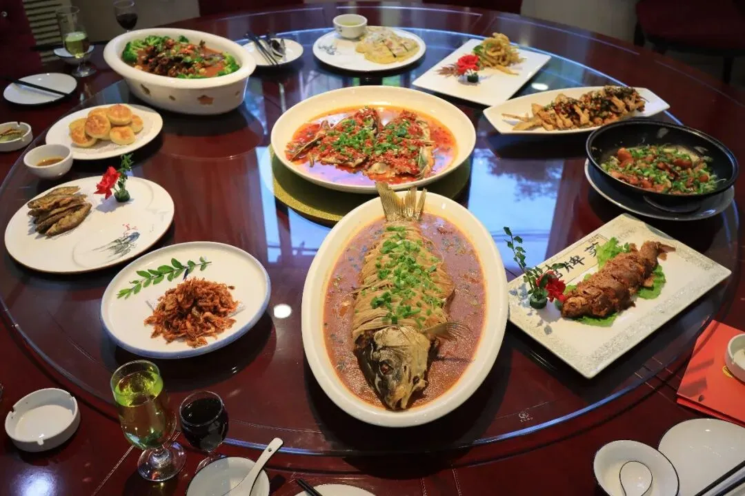 陆浑鱼宴的食材取自陆浑水库的新鲜鱼类,其中最出名的当属“陆浑三宝”——陆浑银鱼、花白鲢鱼、伊河鲂鱼。我们点了一道剁椒大鱼头,这是陆浑鱼宴的头牌菜品。当鱼头端上桌时,青红双椒覆盖其上,色泽诱人,鲜辣的气息扑鼻而来。夹一块鱼肉蘸上鱼汤,鲜嫩爽滑,辣味直击灵魂,那滋味简直绝了。还有清蒸伊河鲂,鱼肉细嫩、口感糯软、入口即化,原汁原味的鲜美让人回味无穷。银鱼我们选择了两种吃法,银鱼羹和香酥银鱼。银鱼羹汤汁浓稠,鲜味十足,富含钙质;香酥银鱼则外酥里嫩,咬上一口,“咔嚓”作响,鲜香在口中散开。