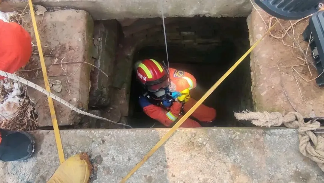 根据现场情况,消防救援人员首先对被困女孩进行安抚,紧接着在井口位置固定安装救援三脚架,安排一名消防救援人员佩戴空气呼吸器,穿着救生吊带,携带救生绳和腰带等物品,缓慢下入井内。