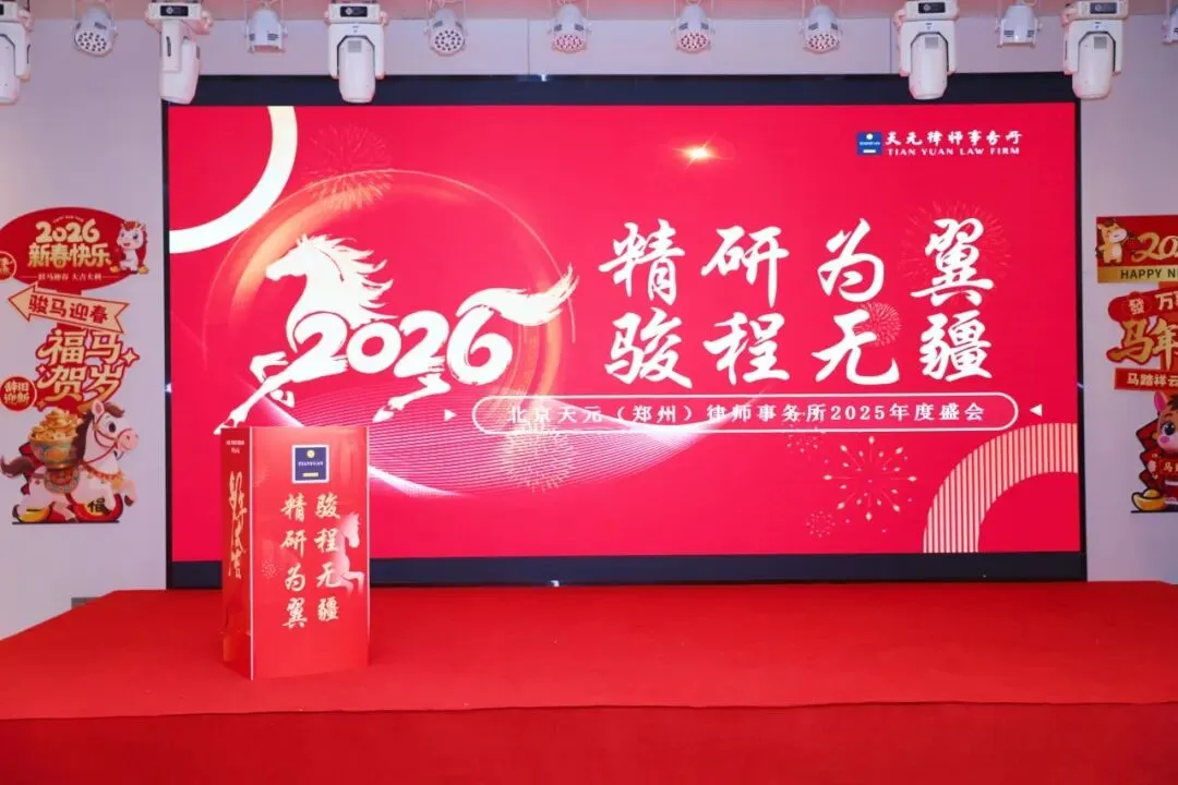 旧岁已展千重锦,新程再启万里帆。2025年,天元郑州律师事务所以专业为基、以团队为魂,在法治征途上步履铿锵、笃行不怠;2026年,全体天元人将以此次盛典为新起点,深植“精研为翼·骏程无疆”的发展理念,以更坚定的信念、更精湛的素养、更饱满的热忱,深耕法治沃土,践行执业初心,在守护公平正义、护航社会发展的伟大征程中,续写天元律所的璀璨华章!