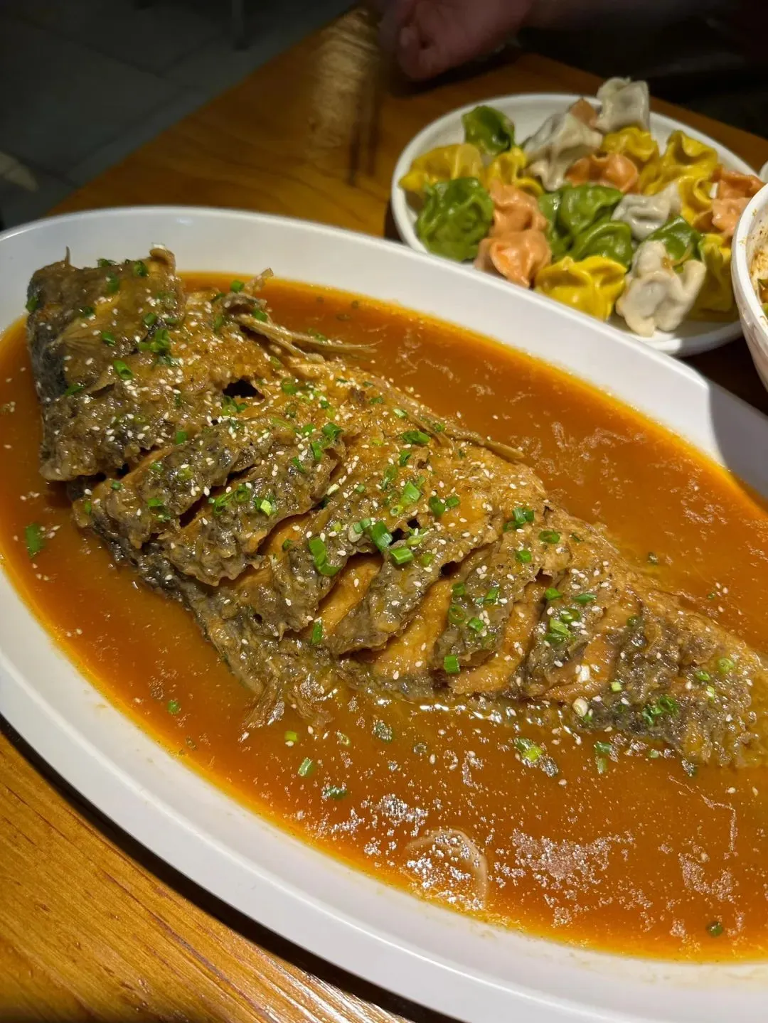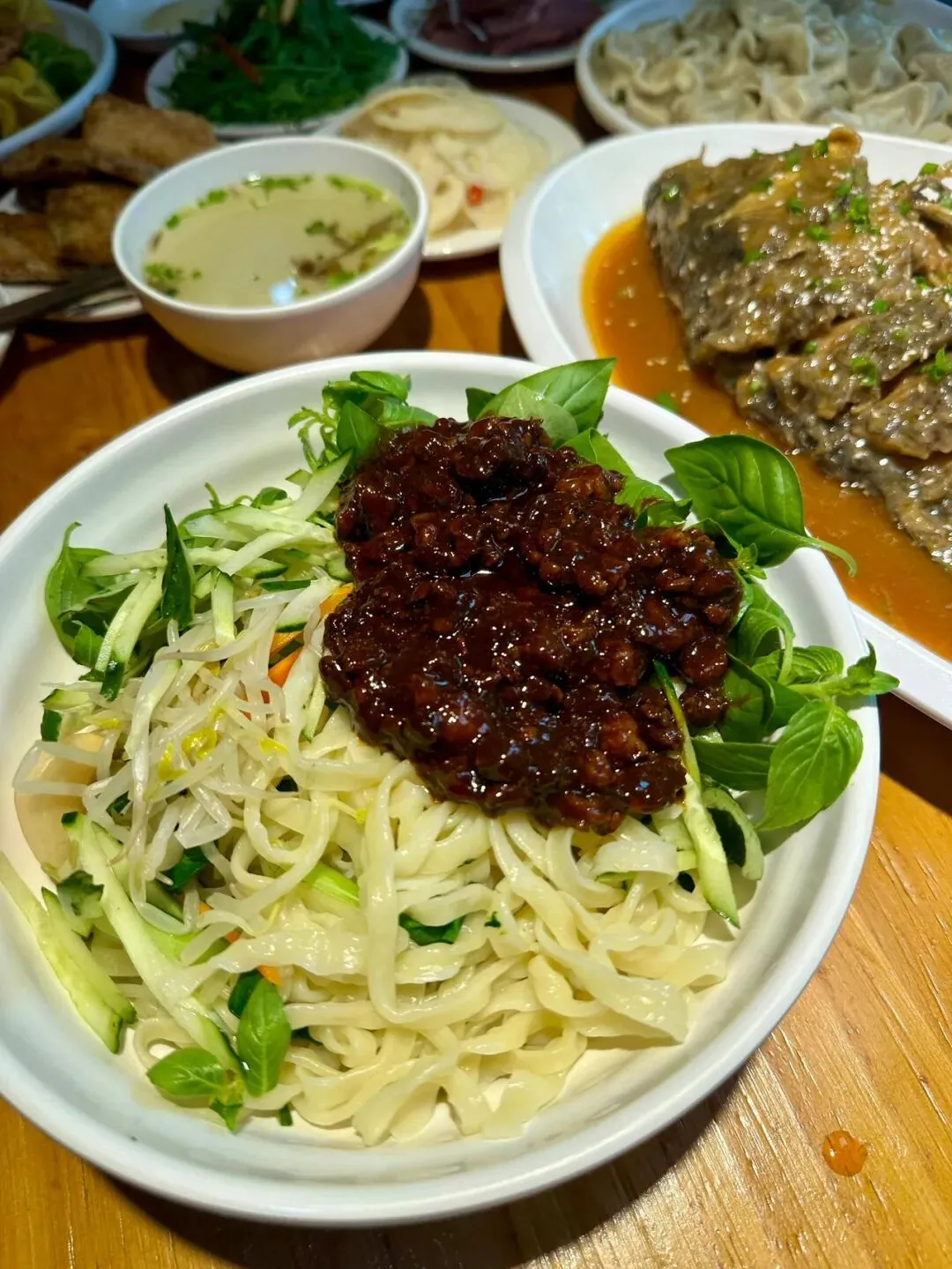 荆芥的面条真好吃,河南特色!炸酱面都是手杆面条 粗细不等筋道喜欢吃点豫菜的可以点红烧黄河大鲤鱼中午晚上都是爆满的人多!