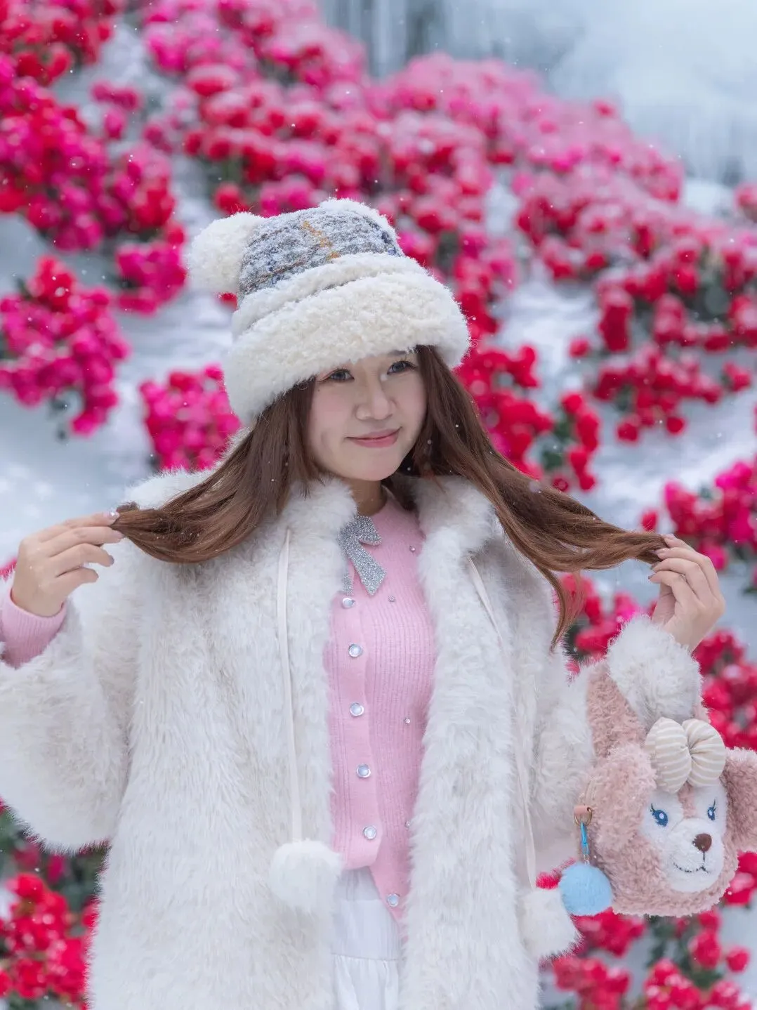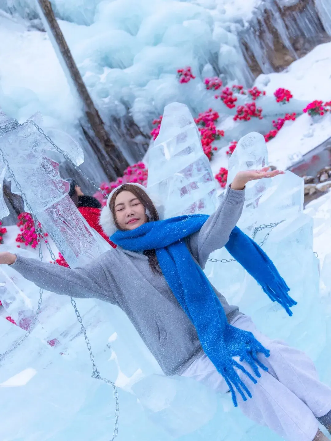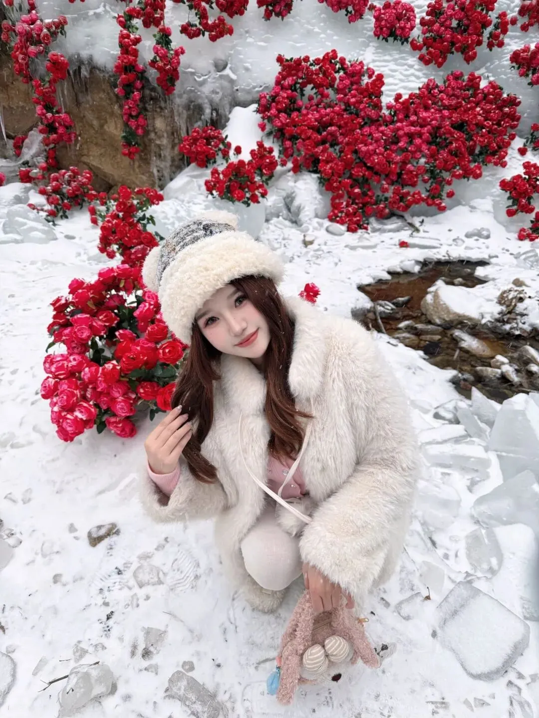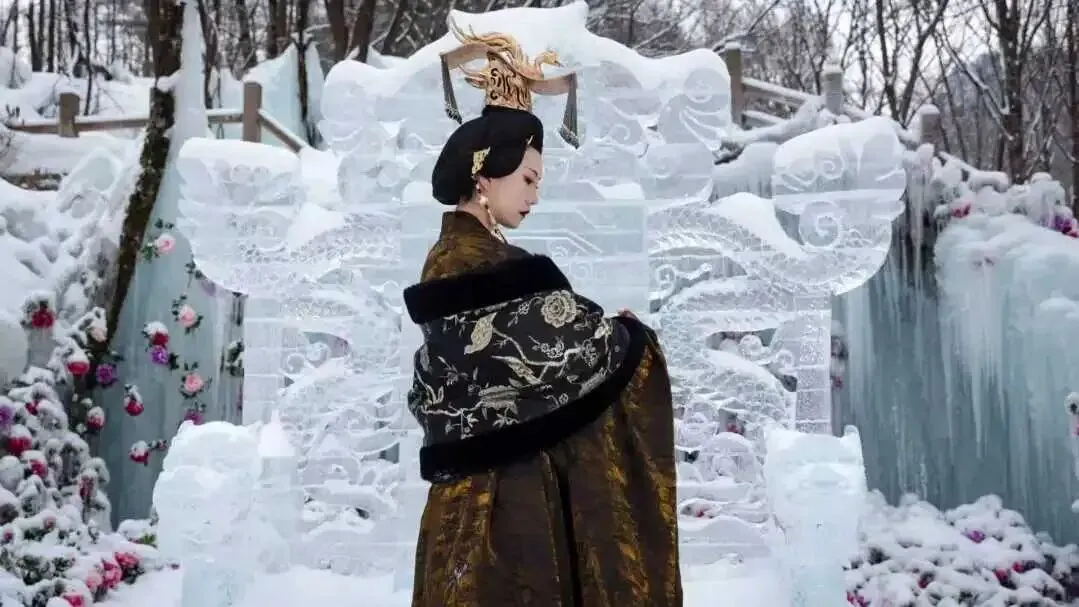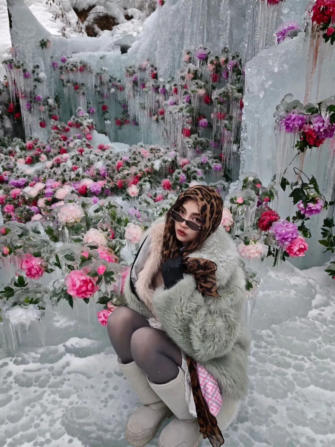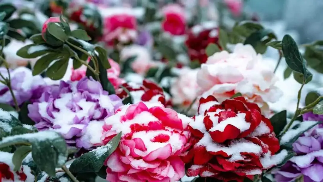 牡丹覆雪绽国色,玫瑰映冰燃艳火