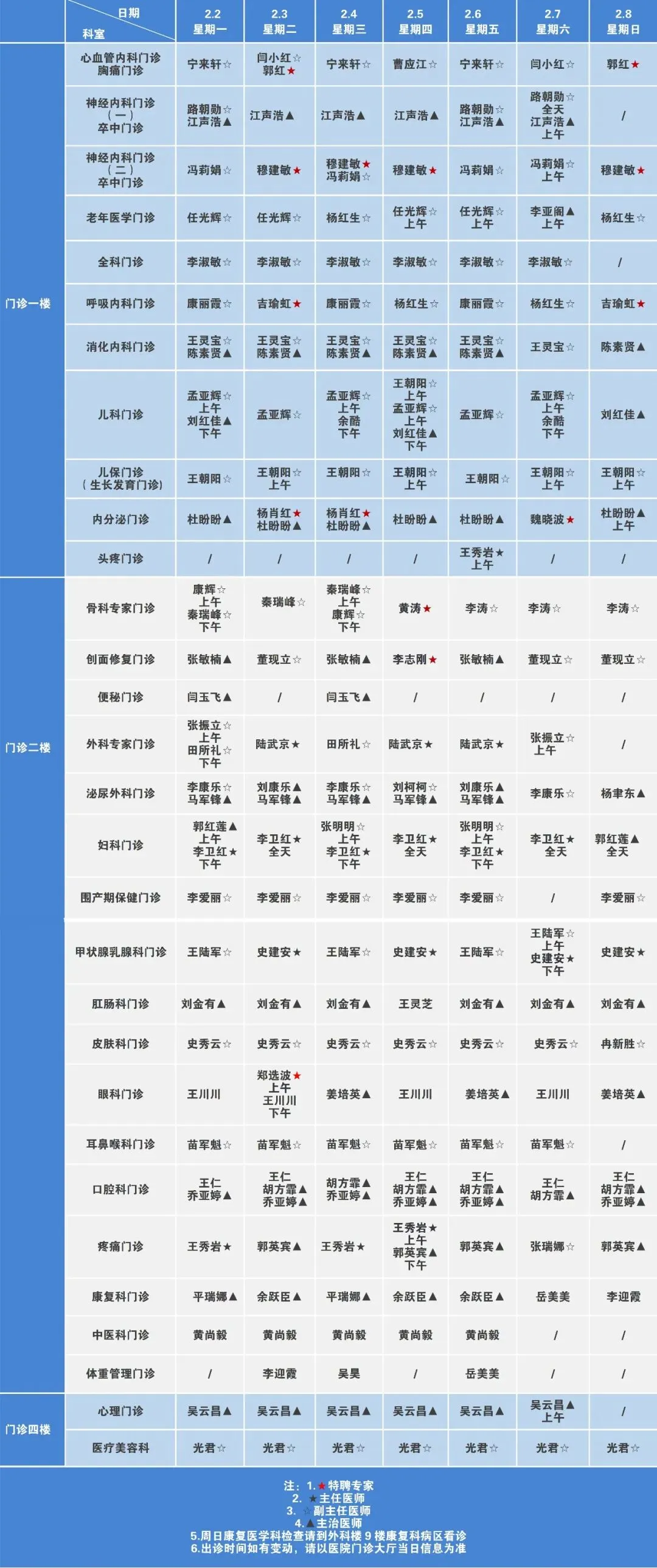 6.出诊时间如有变动,请以医院门诊大厅当日信息为准