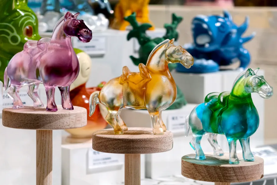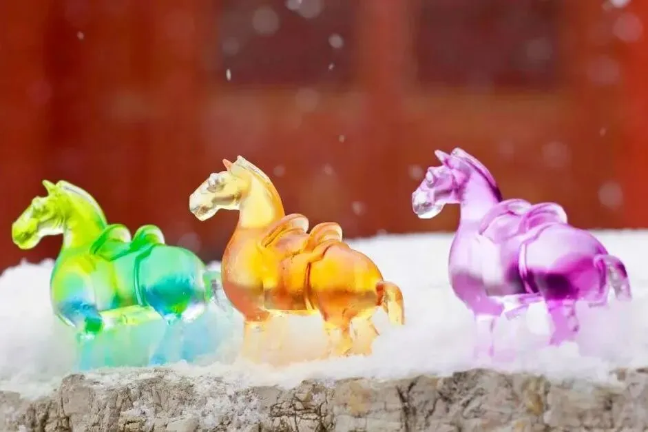 以现代琉璃工艺凝练盛唐骏马神韵,光影交错间,仿佛骏马踏雪而行,蹄声回荡千年。
