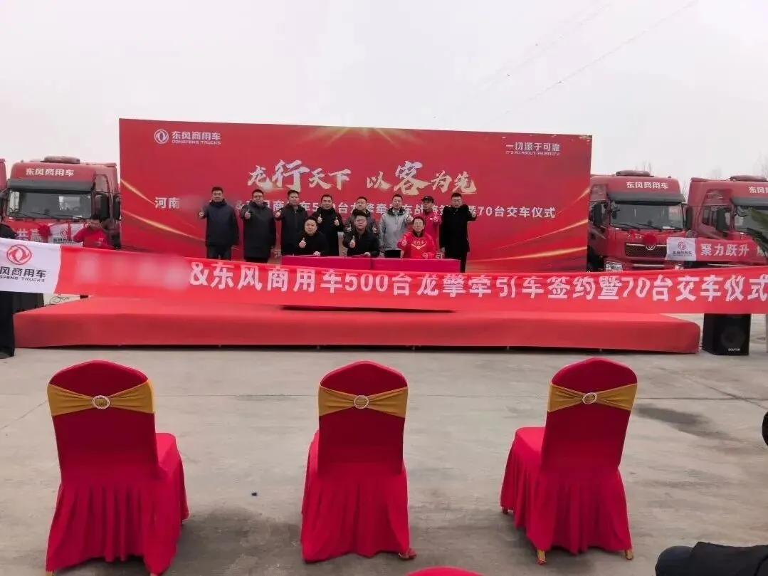 1月29日,以“龙行天下,以客为先”为主题的HNGY&东风商用车500台战略签约暨70台龙擎牵引车首批交车仪式在郑州举行。这场盛会不仅见证了双方战略合作的全面升级,更以首批集中交付,拉开了2026年高效物流运输的新序幕。