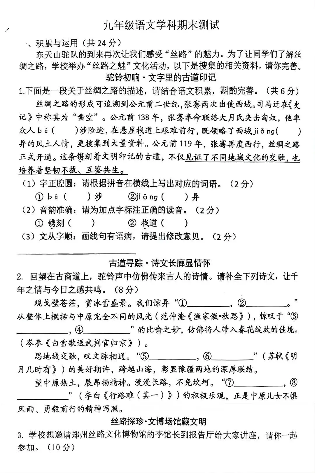 河南省十二县一区2025届初中毕业班第一次模拟测试语文试卷及参考答案