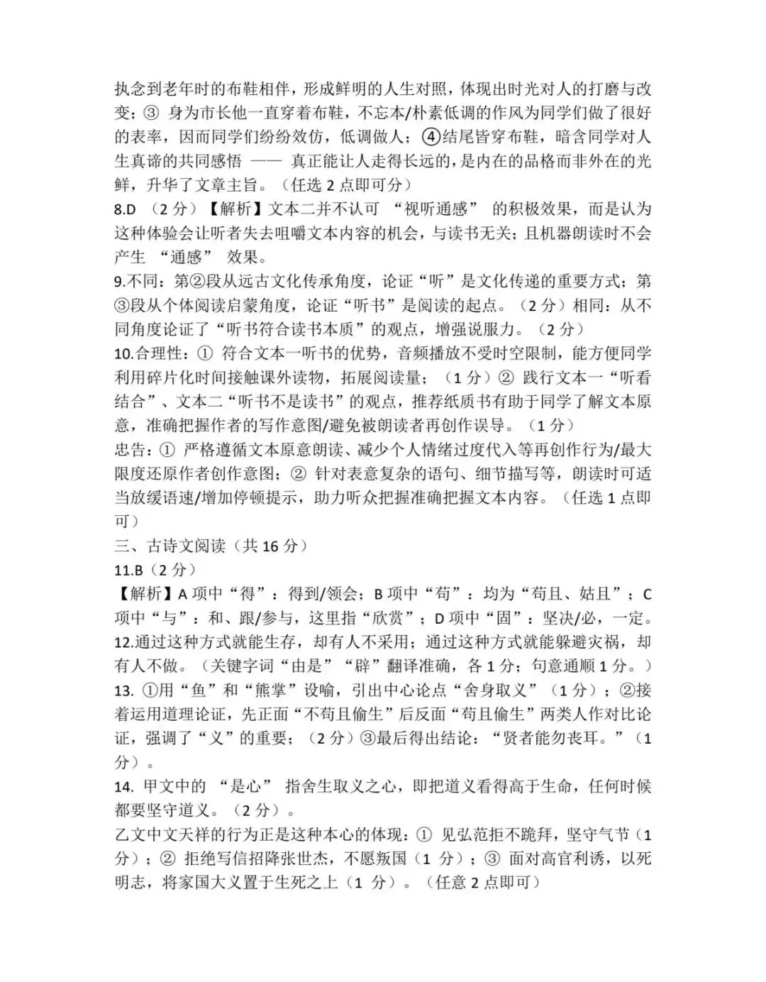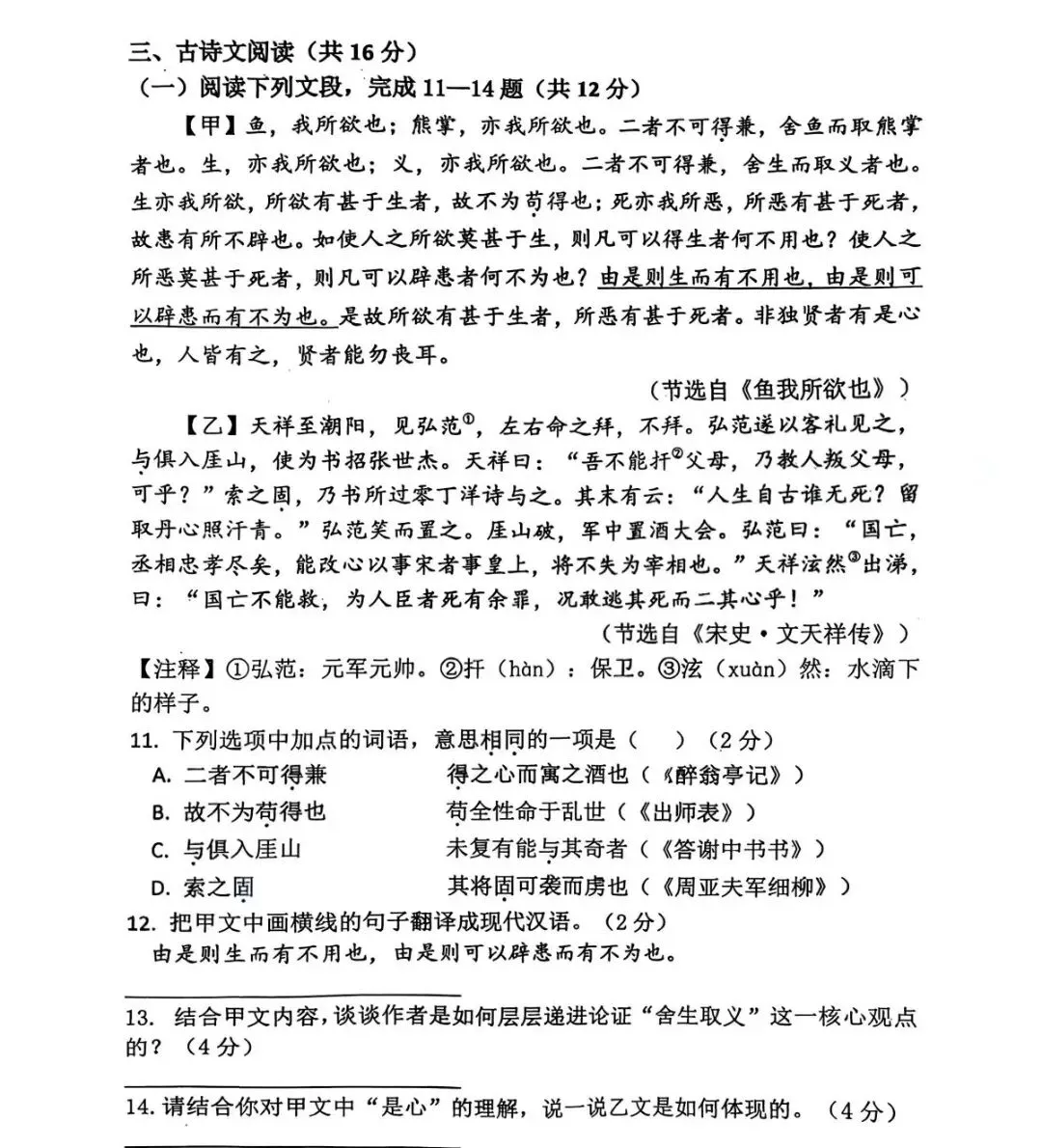 郑州市东枫外国语2022-2023八下语文期中试卷及参考答案