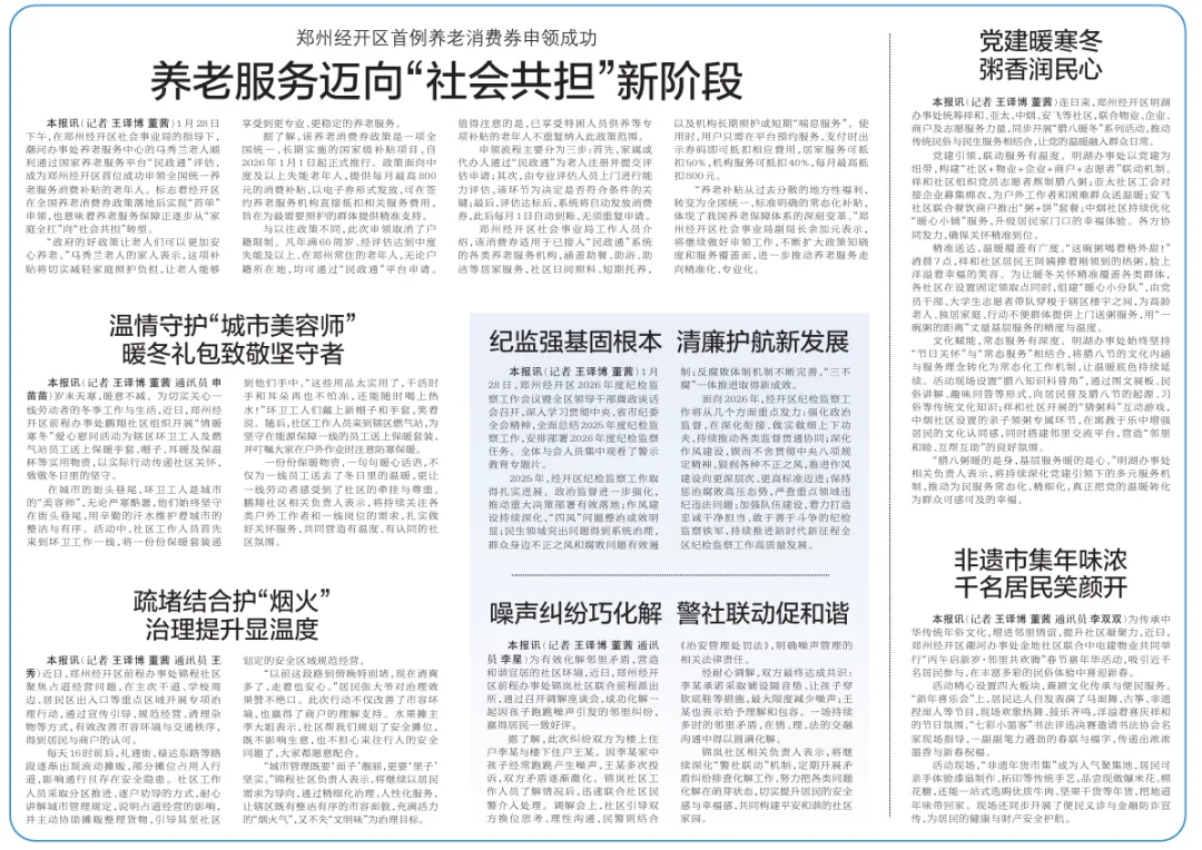 1月28日下午,在郑州经开区社会事业局的指导下,潮河办事处养老服务中心的马秀兰老人顺利通过国家养老服务平台“民政通”评估,成为郑州经开区首位成功申领全国统一养老服务消费补贴的老年人。标志着经开区在全国养老消费券政策落地后实现“首单”申领,也意味着养老服务保障正逐步从“家庭全扛”向“社会共担”转型。