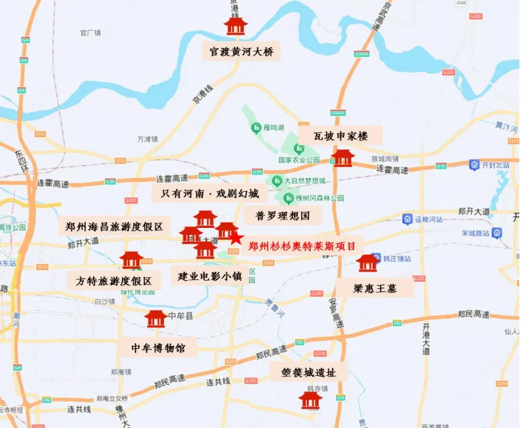 郑州杉杉奥特莱斯项目周边主要文旅项目分布情况