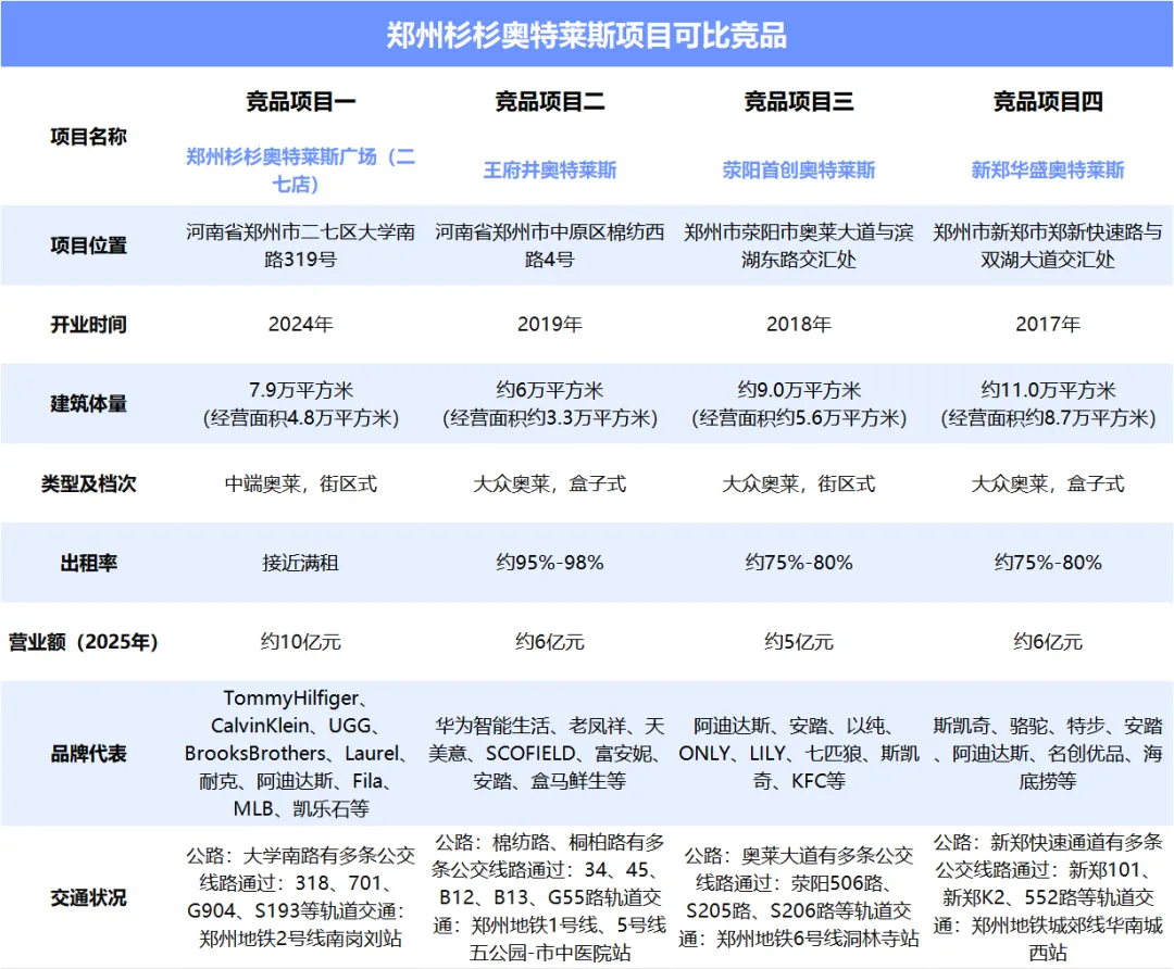 郑州市内与郑州杉杉奥特莱斯项目可比的竞品项目分别为杉杉奥特莱斯广场(二七店)、王府井奥特莱斯、荥阳首创特莱斯、新郑华盛奥特莱斯。前述存量奥特莱斯项目和郑州杉杉奥特莱斯项目距离较远,且品牌矩阵和梯次差异较大,预计竞争分流影响较弱。