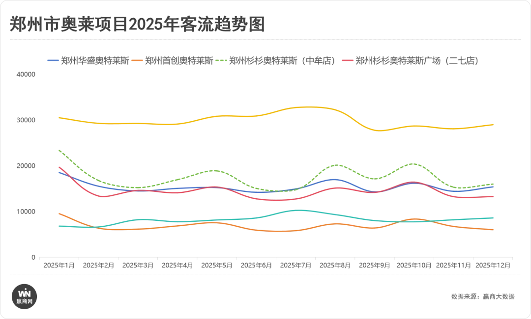 从月度客流分布来看,项目客流表现稳健,位居郑州奥莱行业前列。