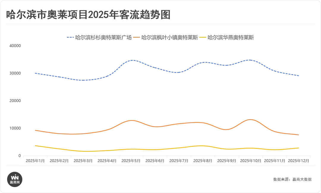 从月度客流分布来看,项目客流表现稳健,位居哈尔滨奥莱行业第一。