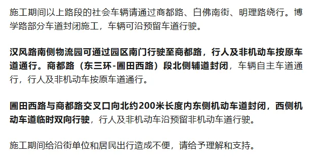 根据郑州市郑东新区城市管理工作的安排,自2月1日起实施郑东新区排水防涝积水点整治建设项目商都路(东三环—贾陈街)雨水工程,需对商都路(东三环—圃田西路)、汉风路(博学路—贾陈街)道路采取封闭施工,计划工期150天。