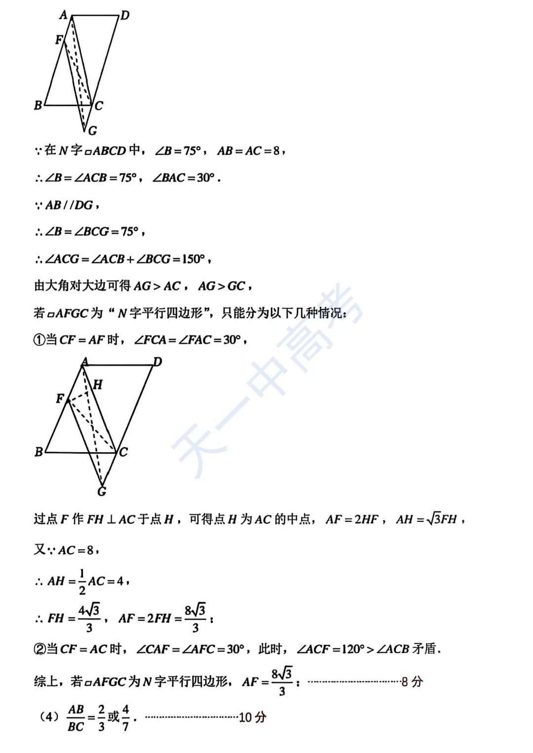 郑州外国语学校调研这几个选填纯属堆结论,尤其第8题!
