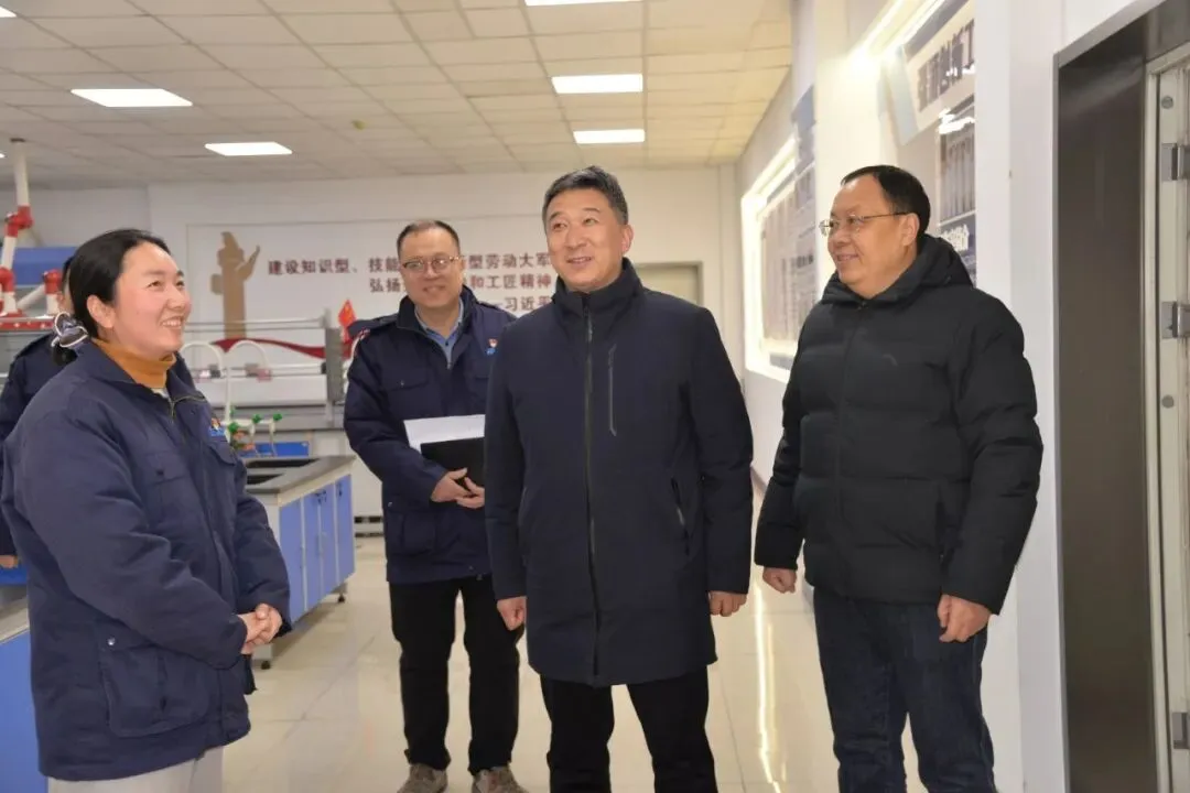 1月30日上午,迎着2026年第一场瑞雪,安阳市总工会二级调研员张贤利、安阳市化工医药能源工会主席薛莉,到安化集团公司调研指导产业工人队伍建设改革、工会阵地建设并实地走访慰问一线职工与困难职工家庭,传递工会组织的关怀与温暖。安化集团公司党委副书记、纪委书记、工会主席李玉杉陪同调研慰问。