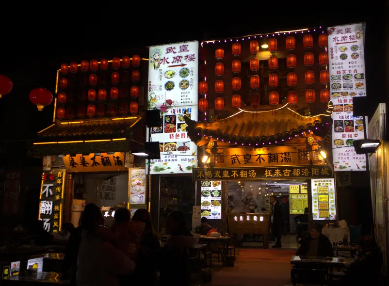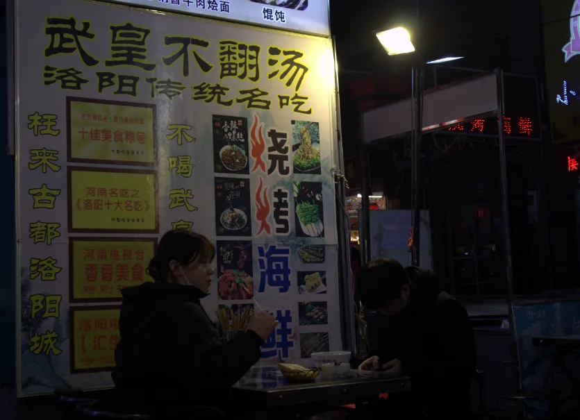小吃一条街上有“不喝不翻汤,枉来洛阳城”。关于街上的不翻汤,你自己决定要不要喝喝看。