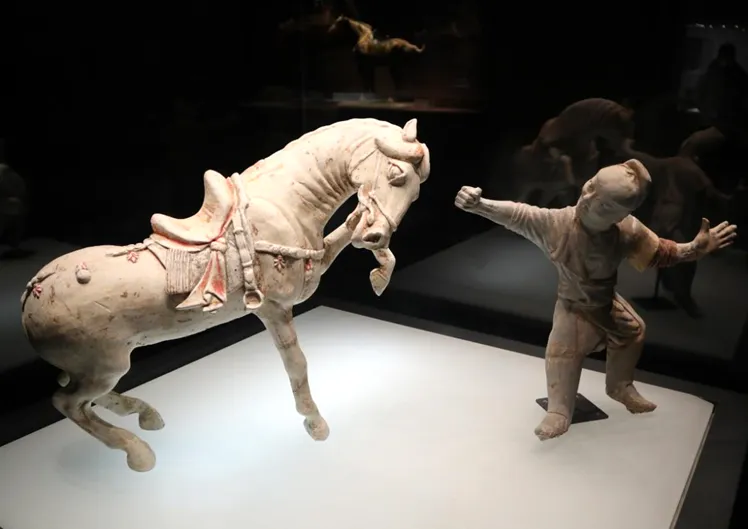 博物馆里的雕塑给我印象最深的就是类似下面这样的动作,尤其扭腰幅度比较大的雕塑,就像马上要翩翩起舞了。我想原作品的含义应该是严肃的,比如为了恐吓。但现在的我们看来这些古墓中出土的雕塑却充满了喜感。