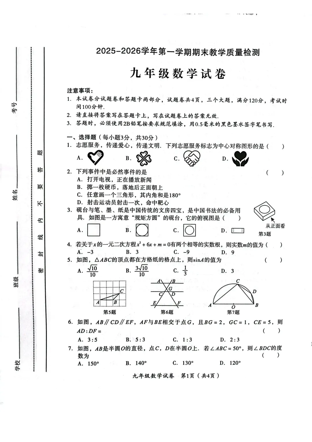 本试卷紧扣九年级课标,全面考察一元二次方程、圆的性质、相似三角形、二次函数等核心内容。基础题如中心对称图形判断、配方法解方程注重概念理解;难点集中在需要深度分析的综合题(如第9题正方形旋转坐标计算、第10题二次函数图像性质探究),对学生的数学建模和逻辑推理能力要求较高,体现了良好的创新性与应用导向。<点击图片查看全卷>