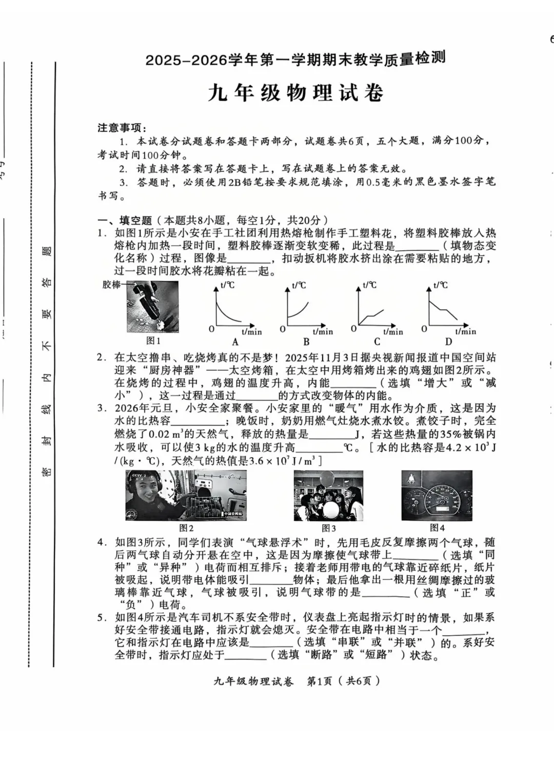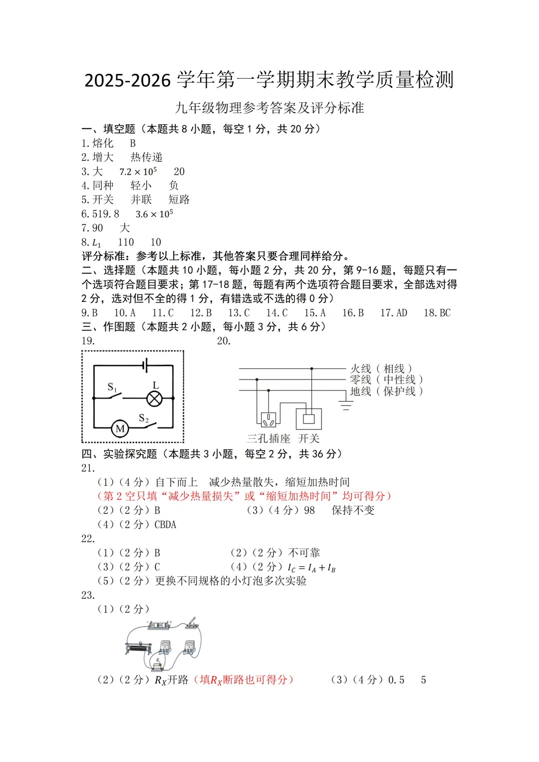 本试卷紧扣九年级物理课标,全面考察物态变化、内能、电路、能量守恒等核心内容。基础题如概念判断、单位换算注重知识理解;难点集中在需要深度分析的综合题(如第20题金属棒运动分析、第25题电热水器限温电路计算),对学生的物理建模和科学探究能力要求较高,体现了良好的创新性与应用导向。<点击图片查看全卷>