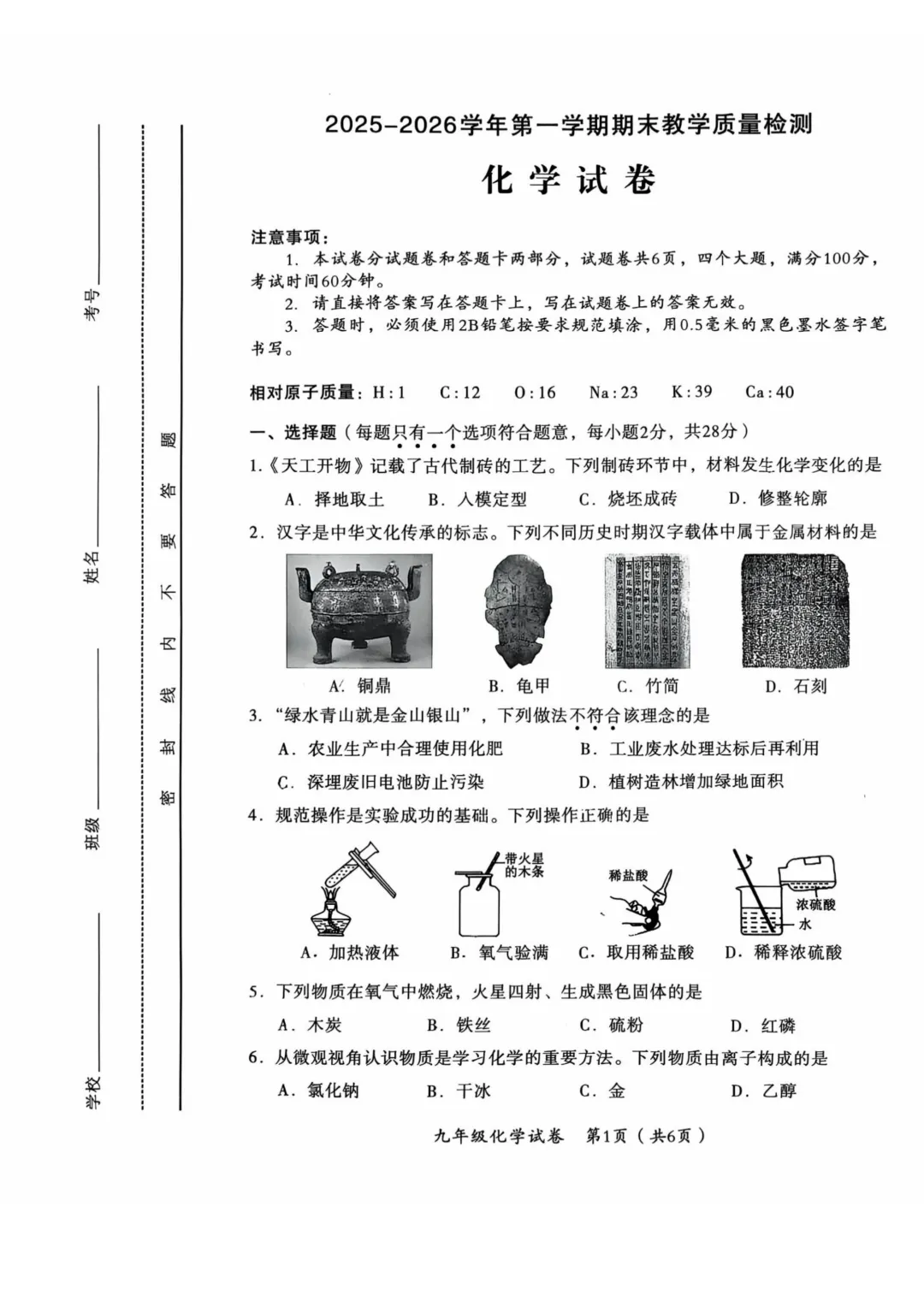 本试卷紧扣九年级化学课标,全面考察物质变化、微观粒子、溶液配制、金属性质等核心内容。基础题如化学变化判断、物质分类注重概念理解;难点集中在需要深度分析的综合题(如第14题混合物计算、第20题物质推断),对学生的化学思维和计算能力要求较高,体现了良好的创新性与应用导向。<点击图片查看全卷>