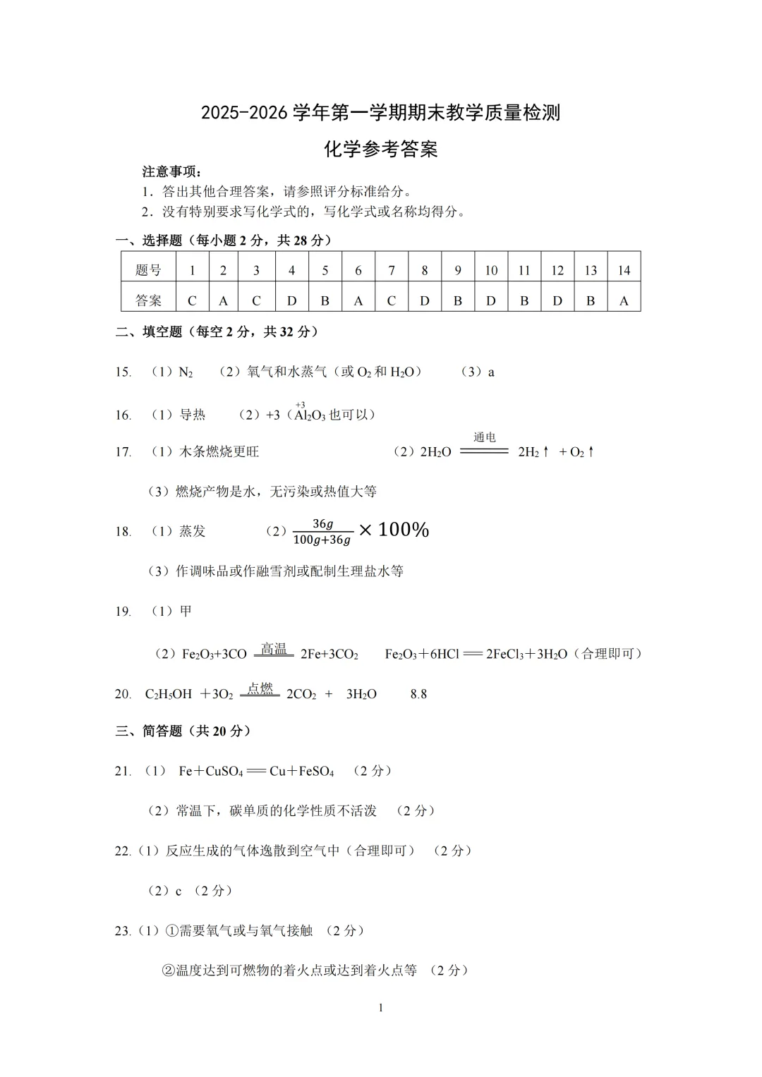化学答案