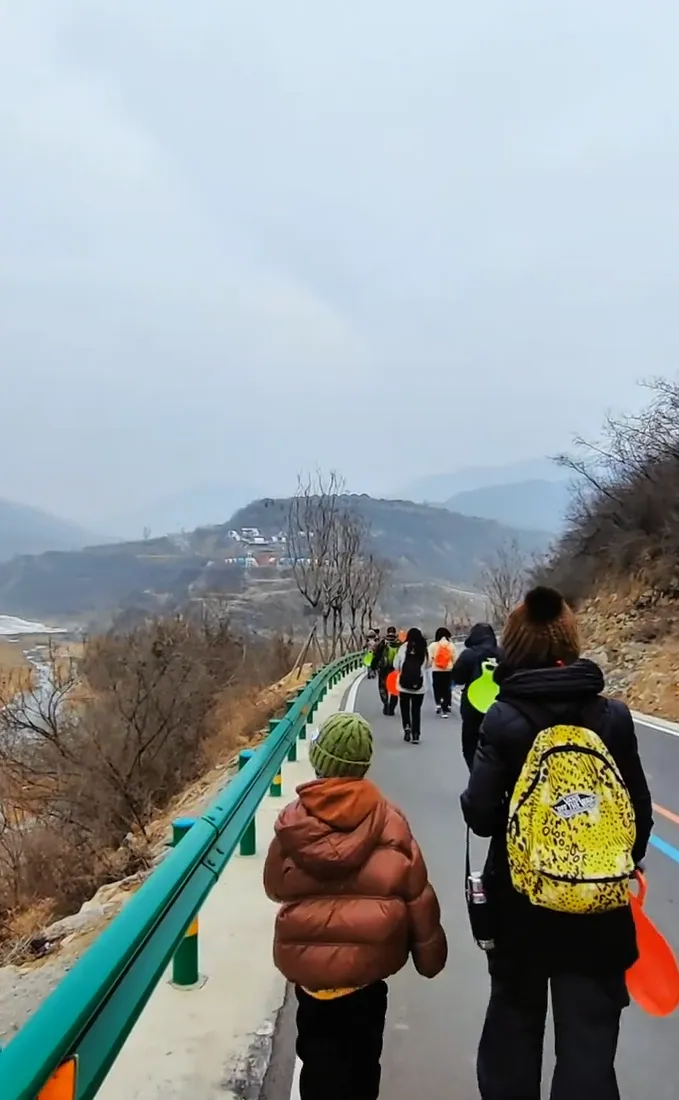 沿着蜿蜒的山间步道徒步前行,脚下的积雪发出“咯吱咯吱”的声响,仿佛是冬天奏响的独特乐章。