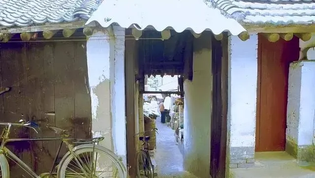 图中这面红砖墙上的画板最熟悉了,木框里插着彩色宣传画,红底白字写得醒目,画里人笑得热闹,旁边墙上刷着店名和街牌,半旧不旧的铁门口摆着小摊,剪刀篦子针线摊一摆,日子味就来了,奶奶说当年买东西就认这门脸,见到这画就知道店里有新货了.