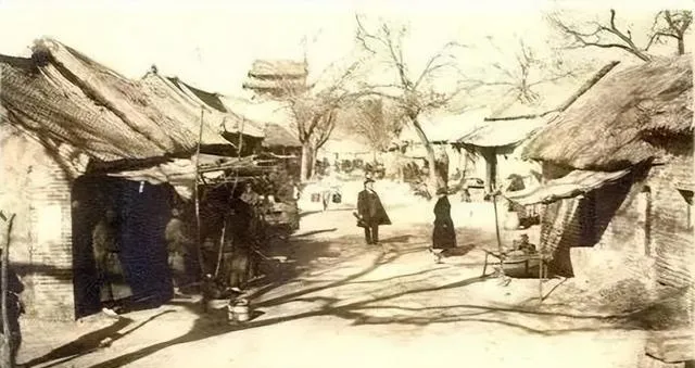 图中这条老街的屋檐是茅草压着木梁,墙面是夯土和青砖拼在一起,门脸小小的却能支起一家人的生计,挑担卖小吃的吆喝声和手摇车的叮当混在一块,灰土被脚步一遍遍拍松,小时候跟着大人买油条,掌柜把纸一包递过来,热气透着芝麻香,抬头能看见不远处的牌楼影子,天一黑就没路灯了,只靠门口挂的白炽灯照明,现在的街道笔直宽阔,哪还见得到这种低矮的铺子.