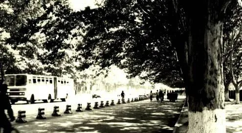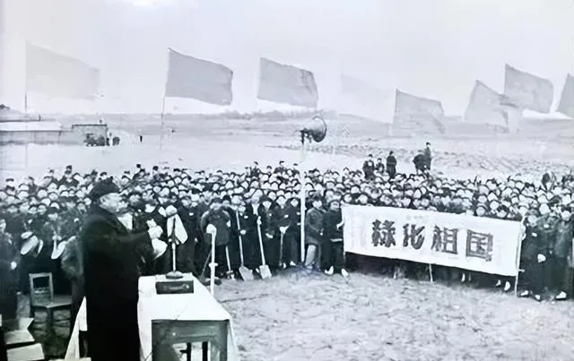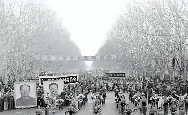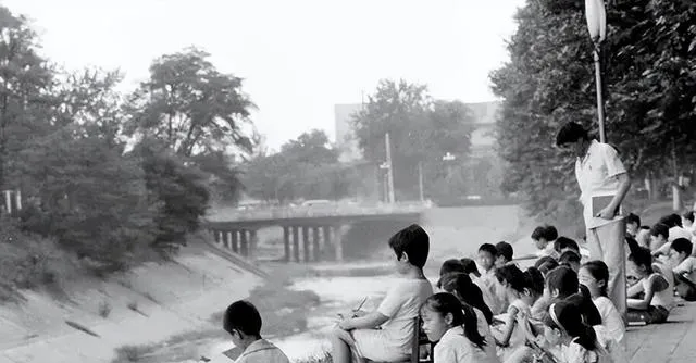 这个场面叫绿化动员大会,旗子一排排立着,喇叭放在木架上,口号写着“绿化祖国”,大家肩上扛着铁锹,手里拿着树苗,爷爷说那会儿“挖坑、扶苗、踏土、提水”一气呵成,栽一棵活一棵,现在走在金水路上那一长溜的梧桐,很多就是那时种下的.